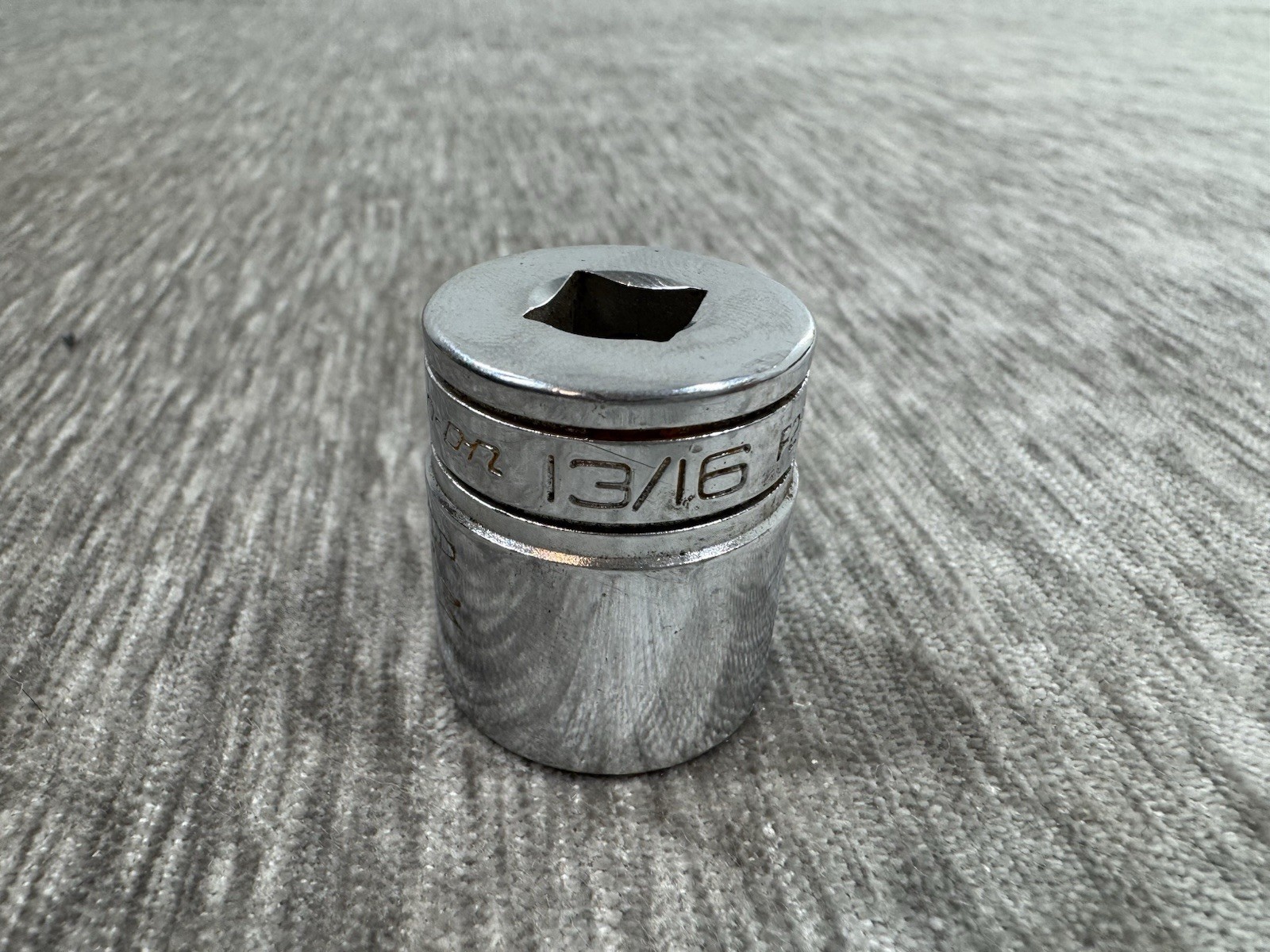 For sale is a Snap On 3/8" Drive 13/16" 12PT SAE Shallow Chrome Socket F261