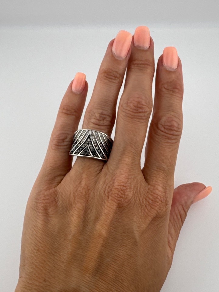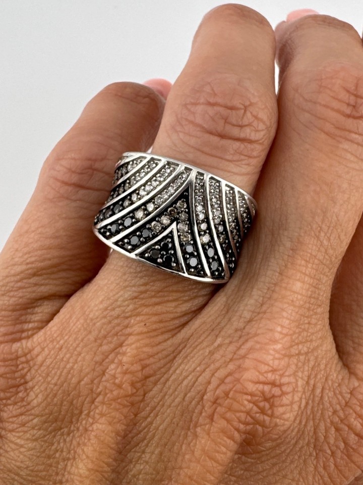 Chocolate, Black, and White Diamond Wide Chevron Band, Size 6, 8.41g