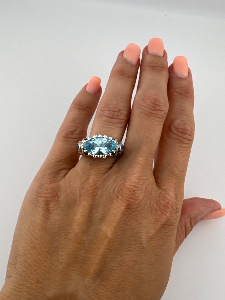 Unique East West Set Blue Topaz Sterling Silver Ring, Size 5.75, 6.78g