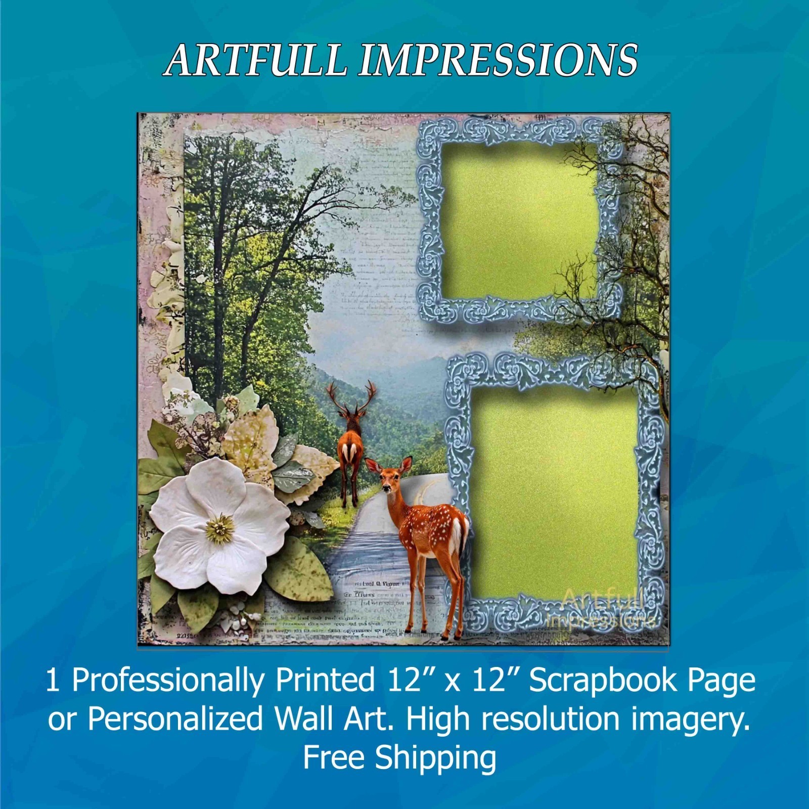 Deer & Wild Cherokee Rose Path –Personalized Scrapbook Page or Wall Art