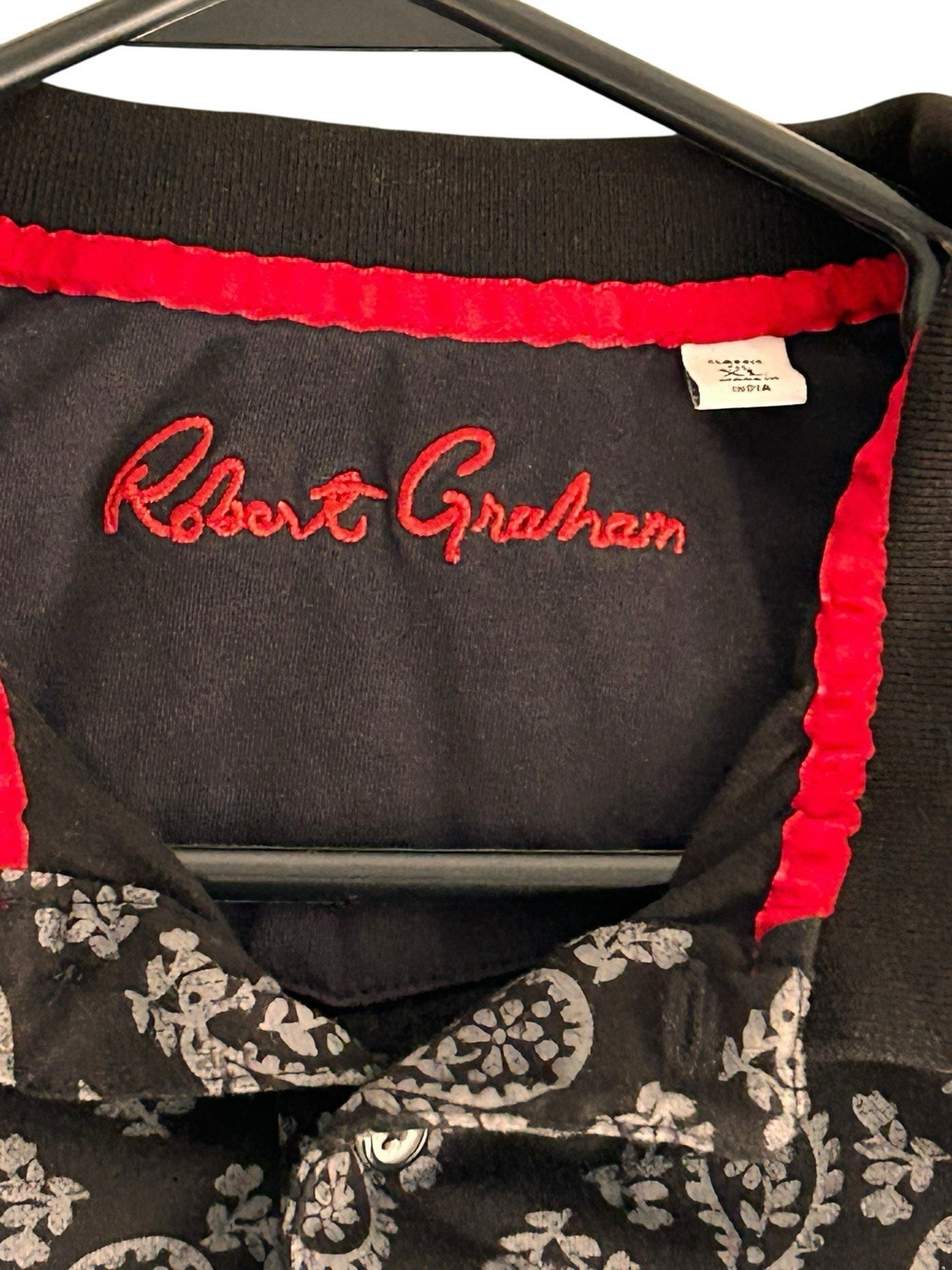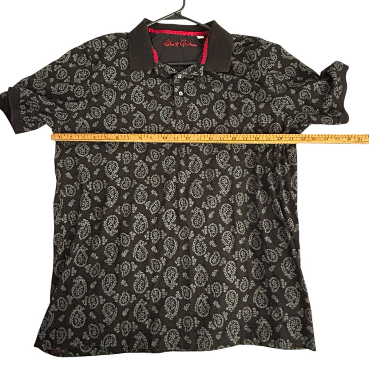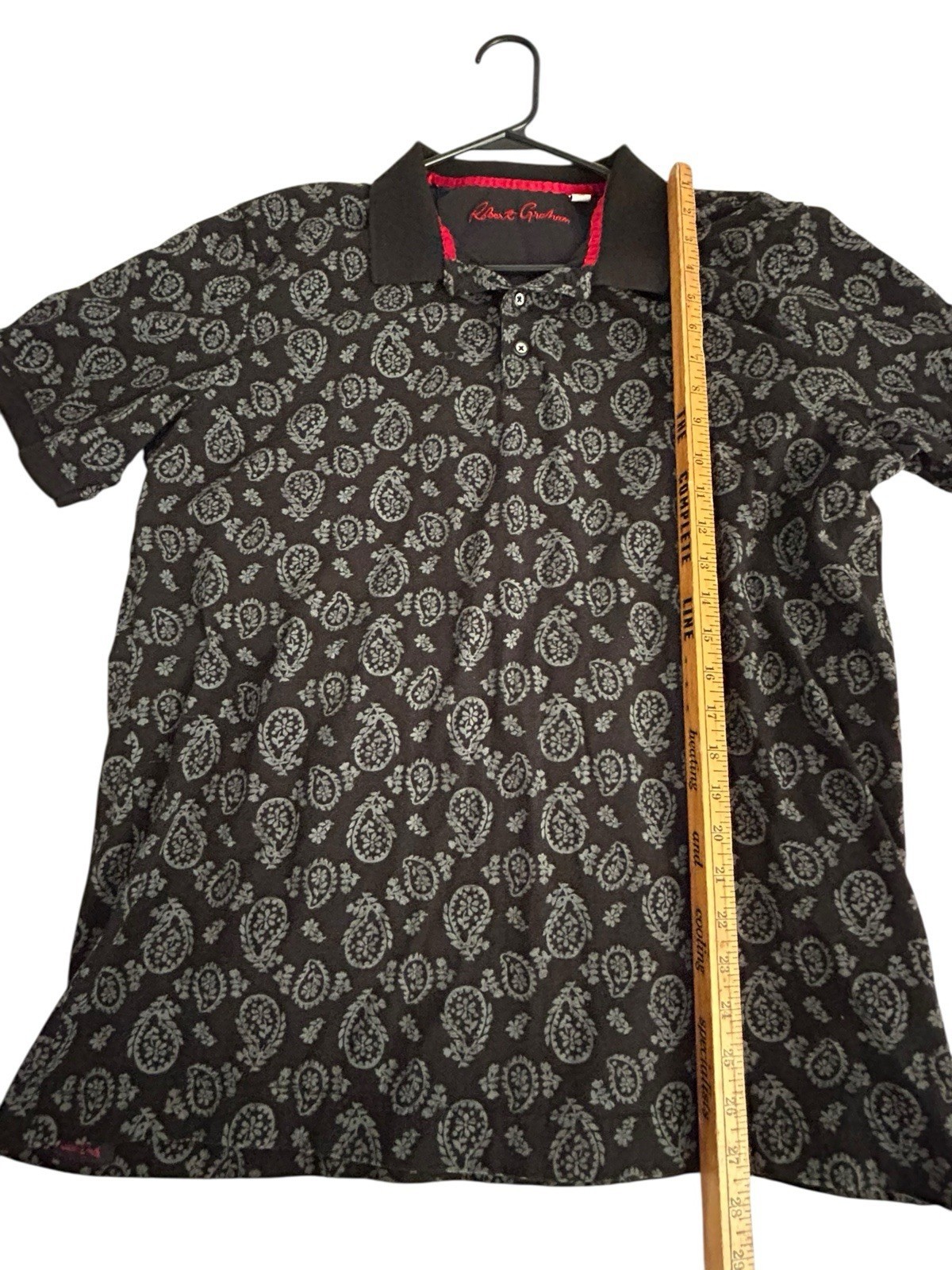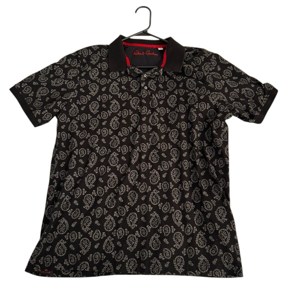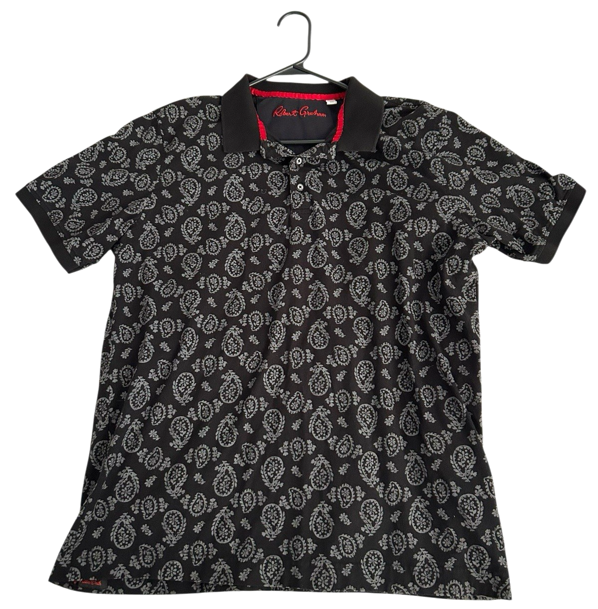 Robert Graham Kramer Polo Shirt Mens XL Black Paisley Short Sleeve Classic India