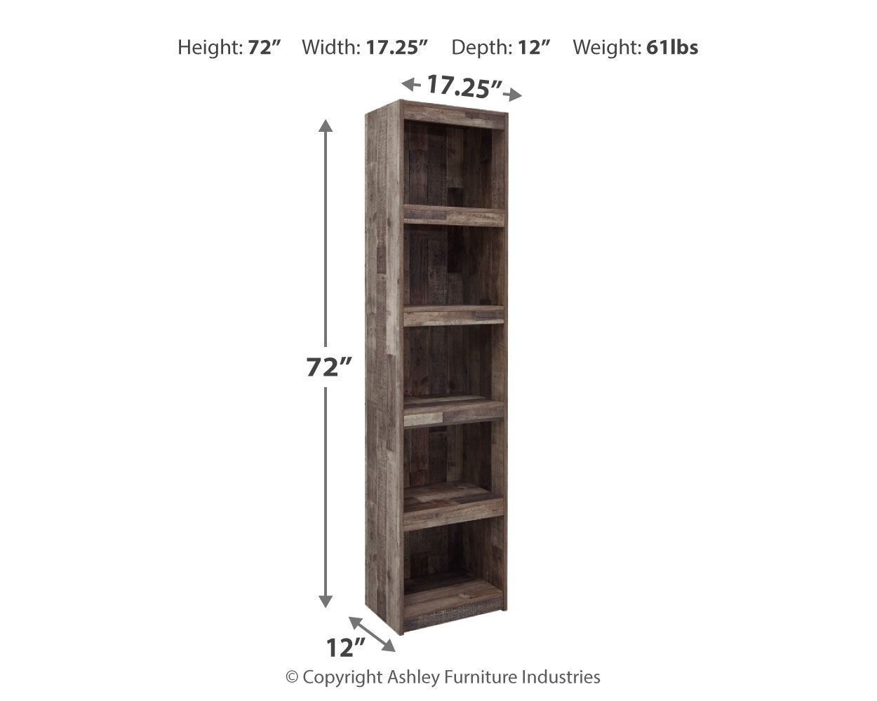 Make this pier TV stand the center of attention with its popular urban eclectic style. Its rustic finish over a replicated pine grain creates an authentic natural look for your home entertainment area. Open storage with adjustable shelving accommodates media needs.Additional Dimensions Opening (5): 0" Assembled entertainment center: 0" Product Features Made with engineered wood (MDF/particleboard/plywood) and decorative laminate for the right balance of affordability and durability Rustic butcher block finish over replicated pine grain with authentic touch 4 shelves (3 adjustable) Assembly required Derekson - Multi Gray - Pier17.13"W x 11.89"D x 71.97"H - 1.0 lb