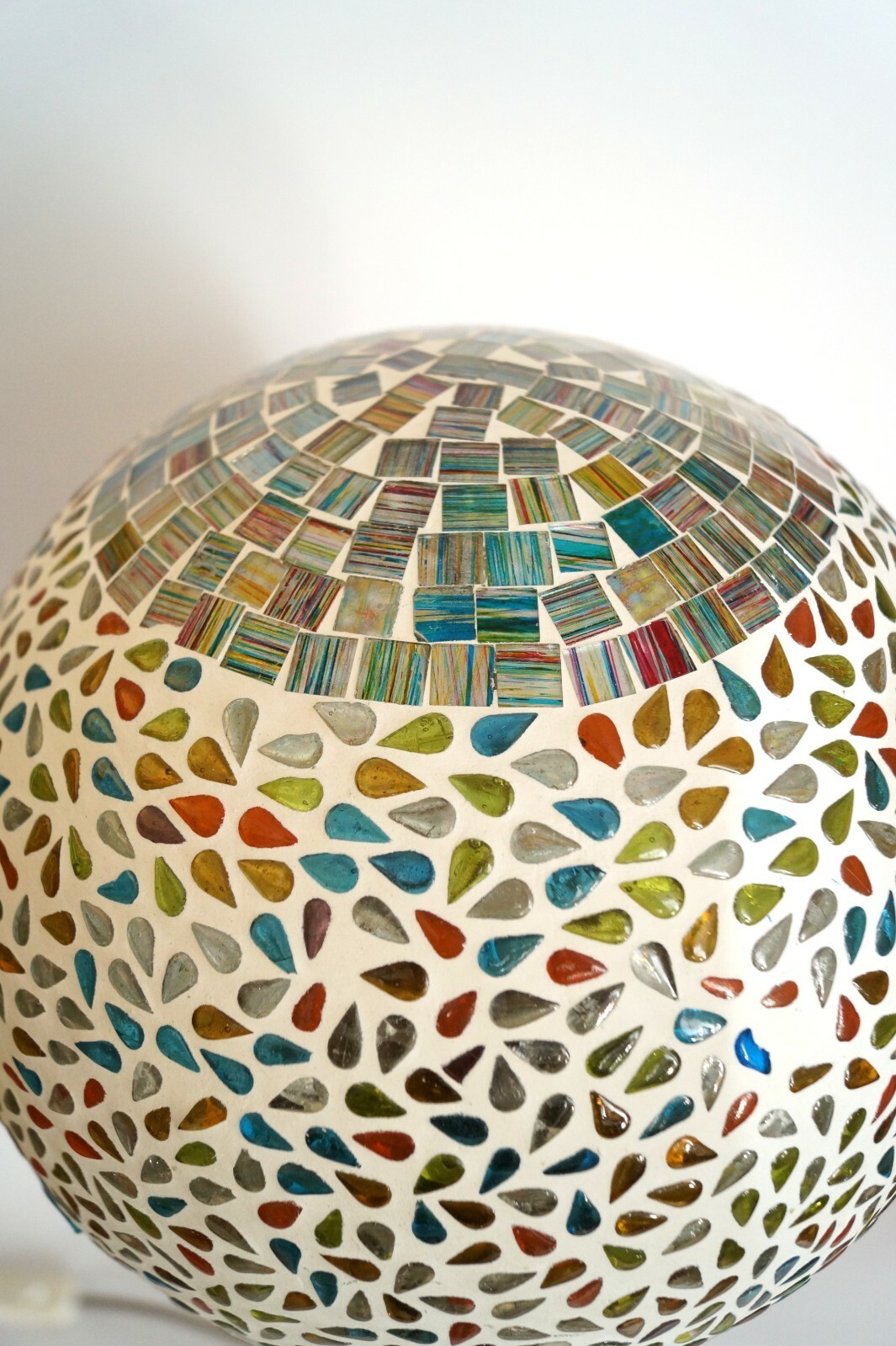 Unique Art Deco Kugelleuchte Tischlampe "Golden Mosaic" single piece of acrylic