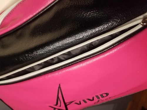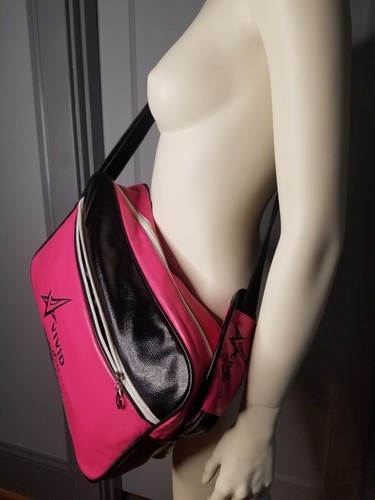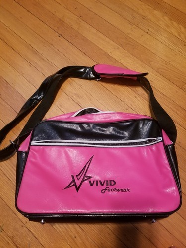 The Vivid Footwear Exotic Dancer Stripper Tote Bag is a medium-sized rectangular bag with a zip closure and a black crossbody strap handle. The bag features a hot pink exterior color with silver hardware accents, perfect for travel occasions. Made of vinyl material with a textured finish, this tote bag also includes inner pockets, a limited edition design, and is water-resistant. The black jacquard lining adds a touch of elegance to this unique and eye-catching handbag. This bag is new but has some black and some white transfer from storage. Not too noticeable but it's there. Please ask questions as all sales are final. I use recycled materials for packaging whenever possible.