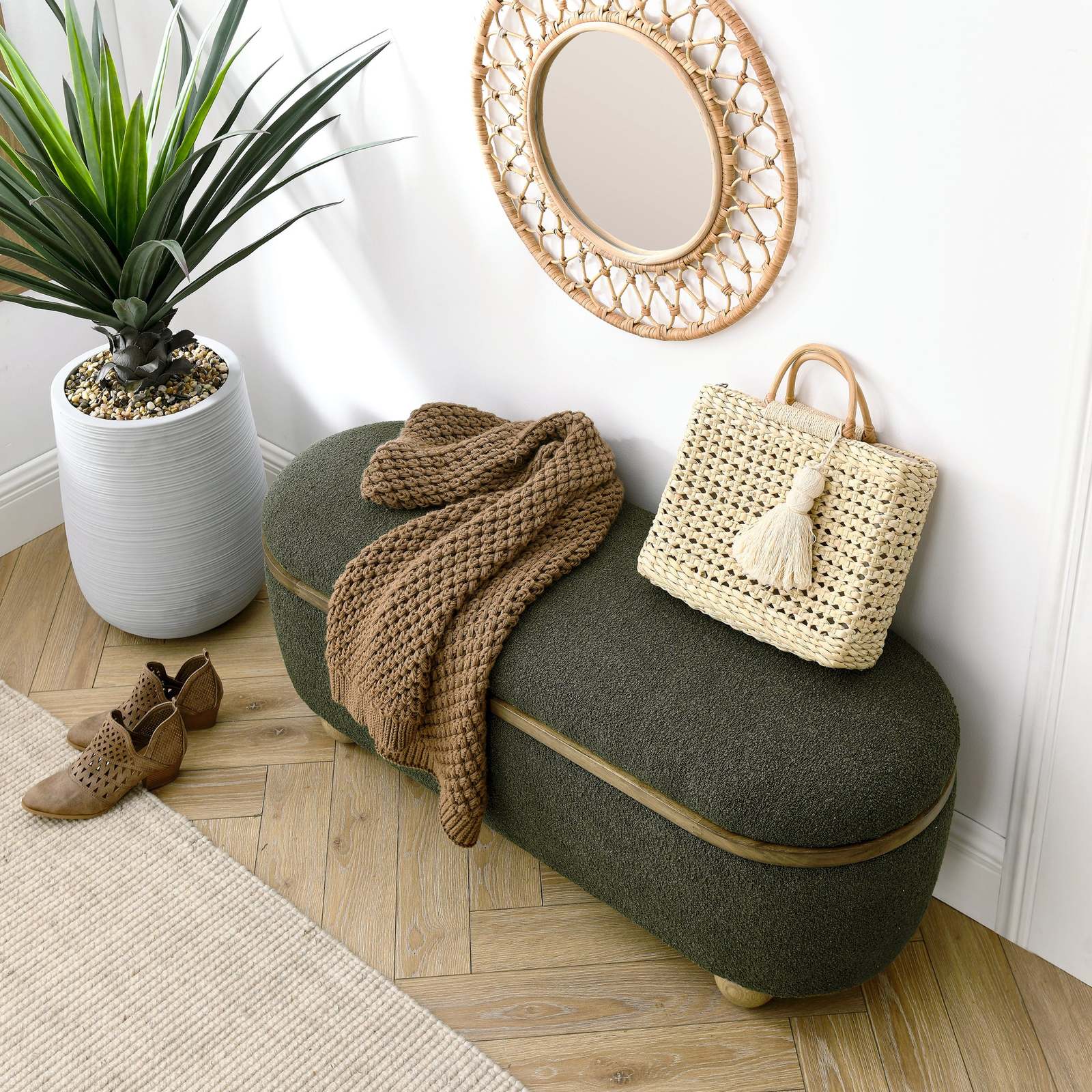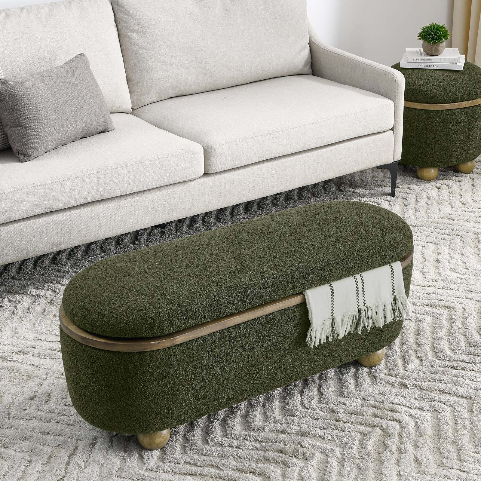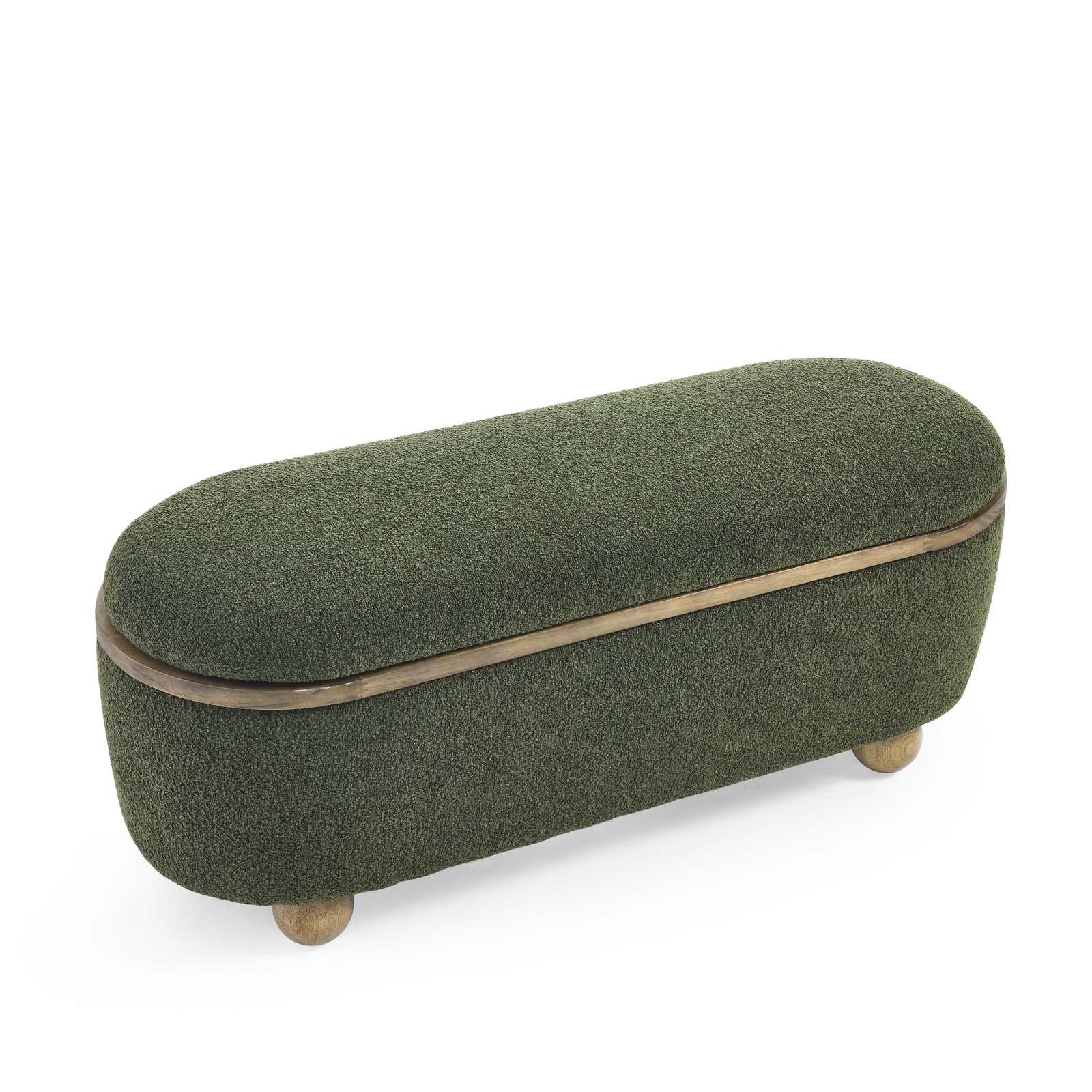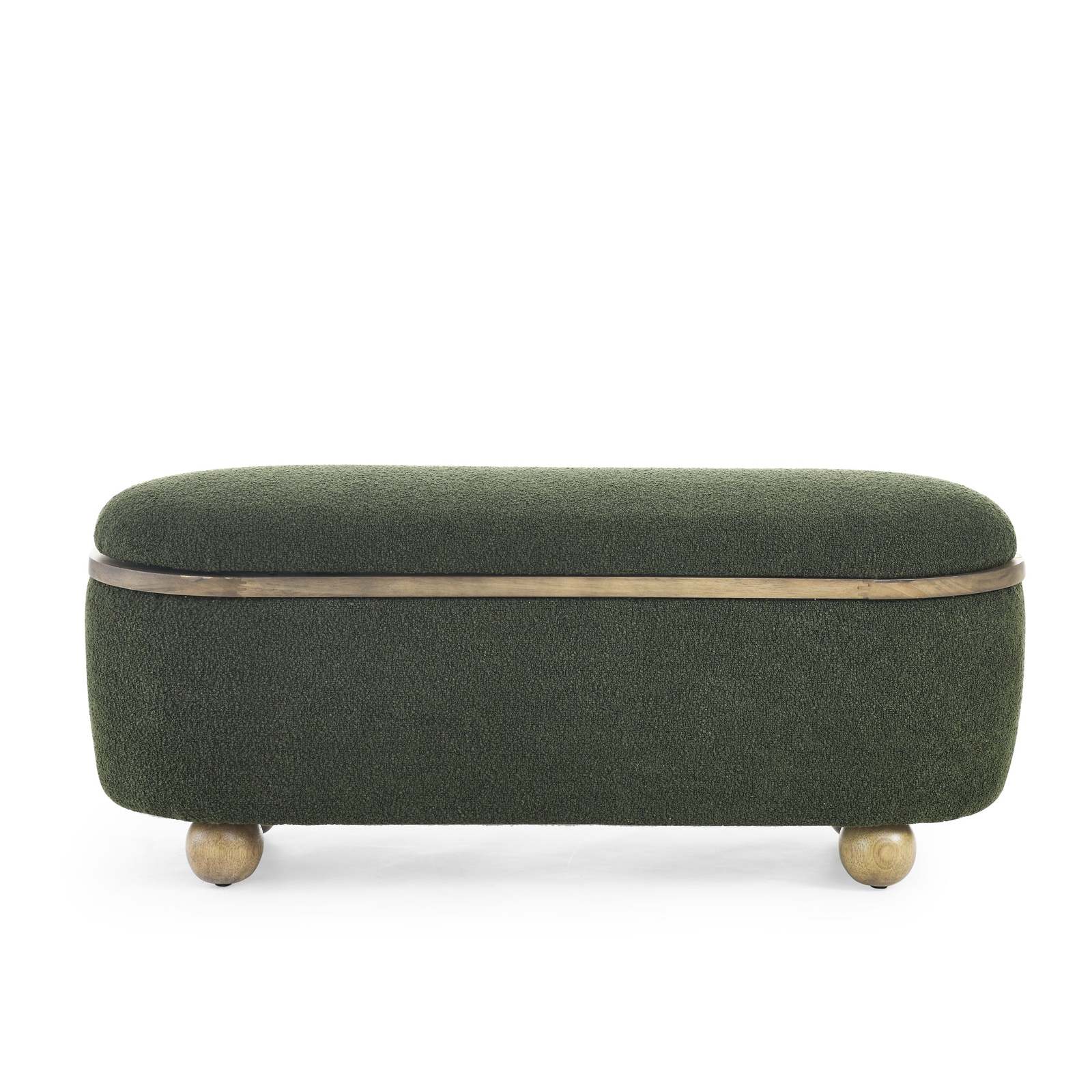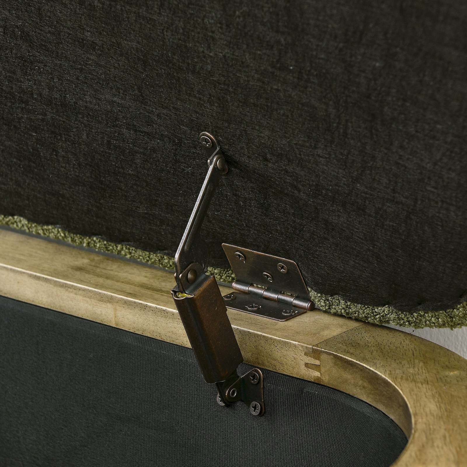 Large Dark Green Upholstered Storage Ottoman Bench Seating