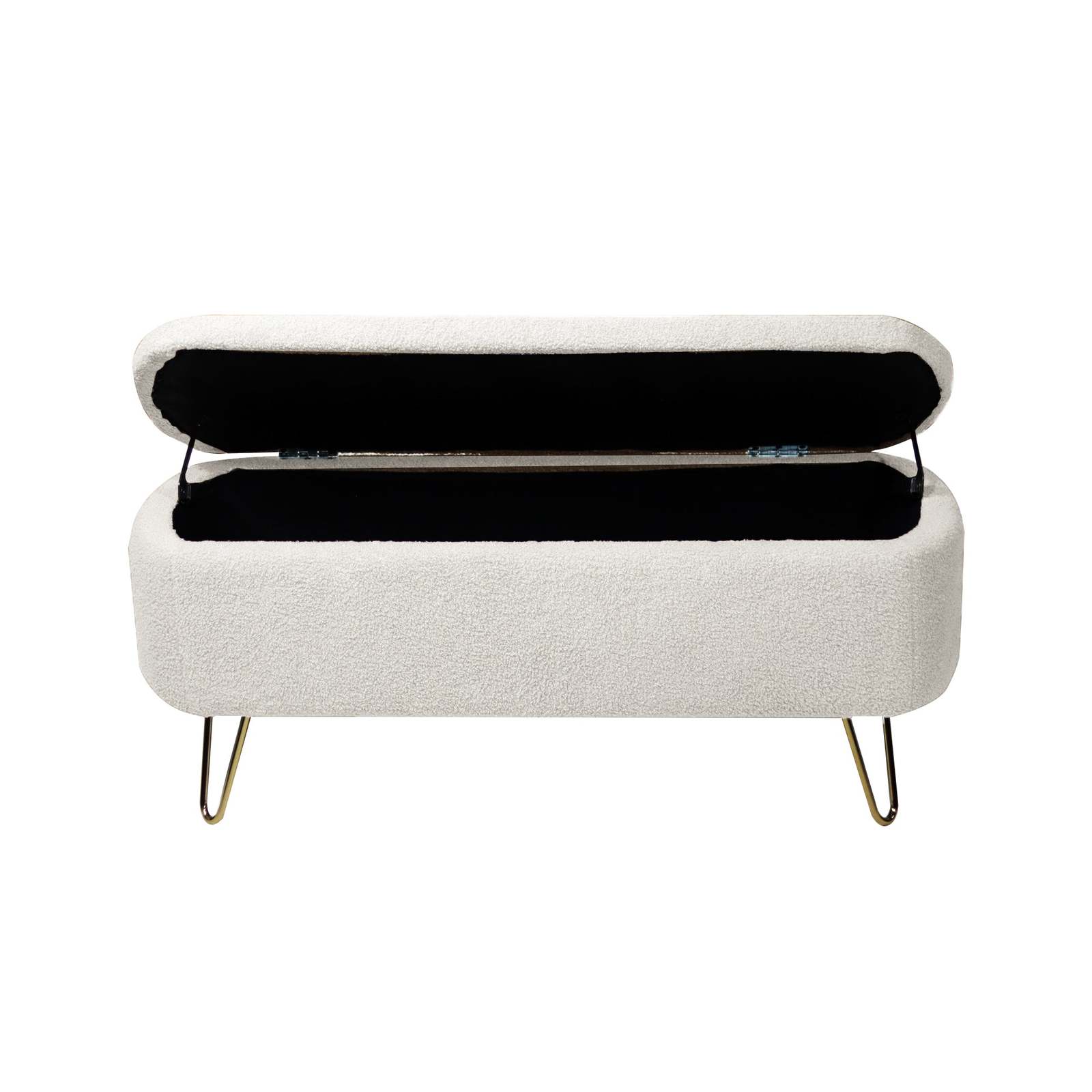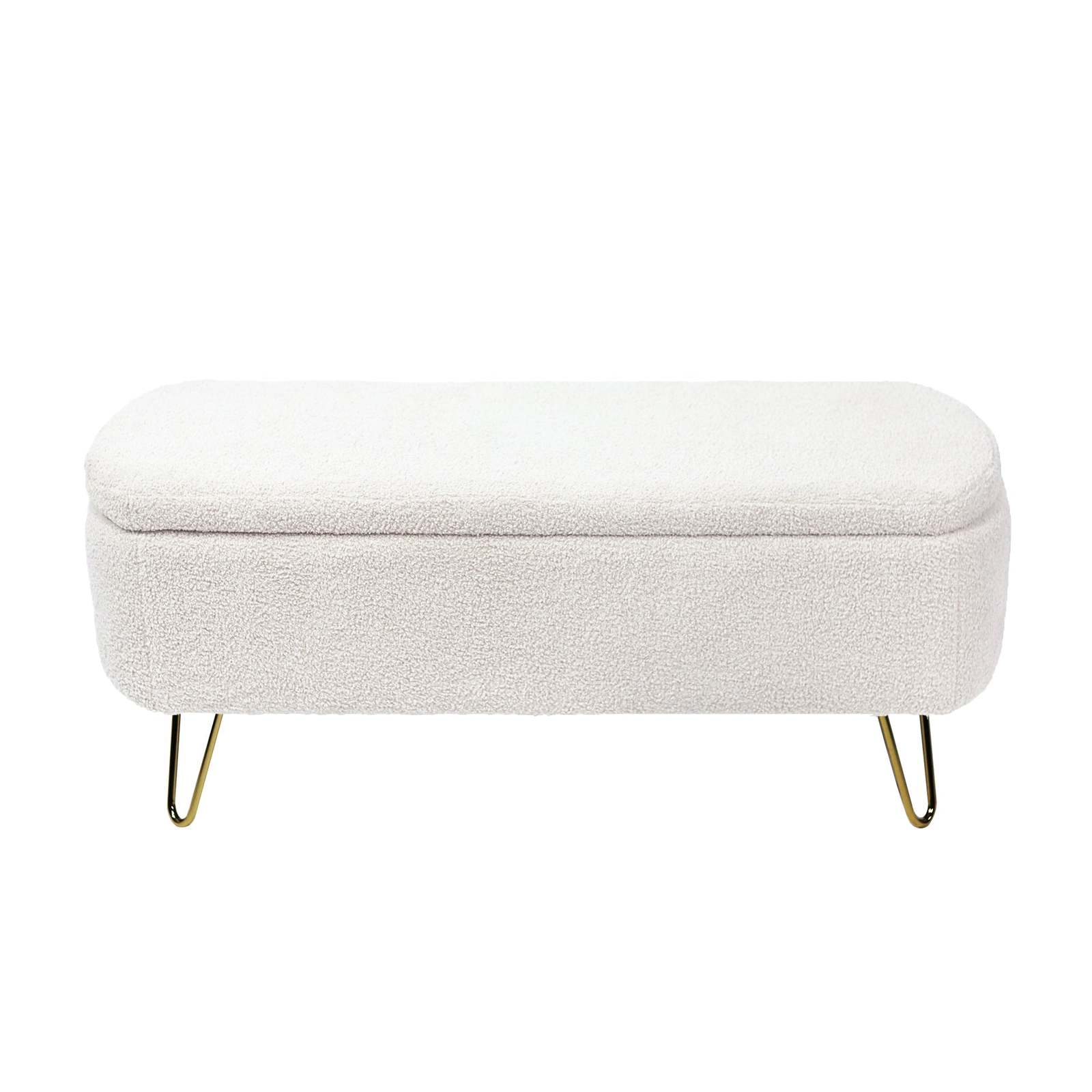 Ivory White Storage Ottoman Bench | Faux Fur End Bed Entryway Bench