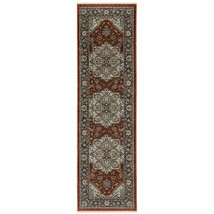2 X 8 Blue Beige Grey Gold Green And Rust Red Oriental Power Loom Stain