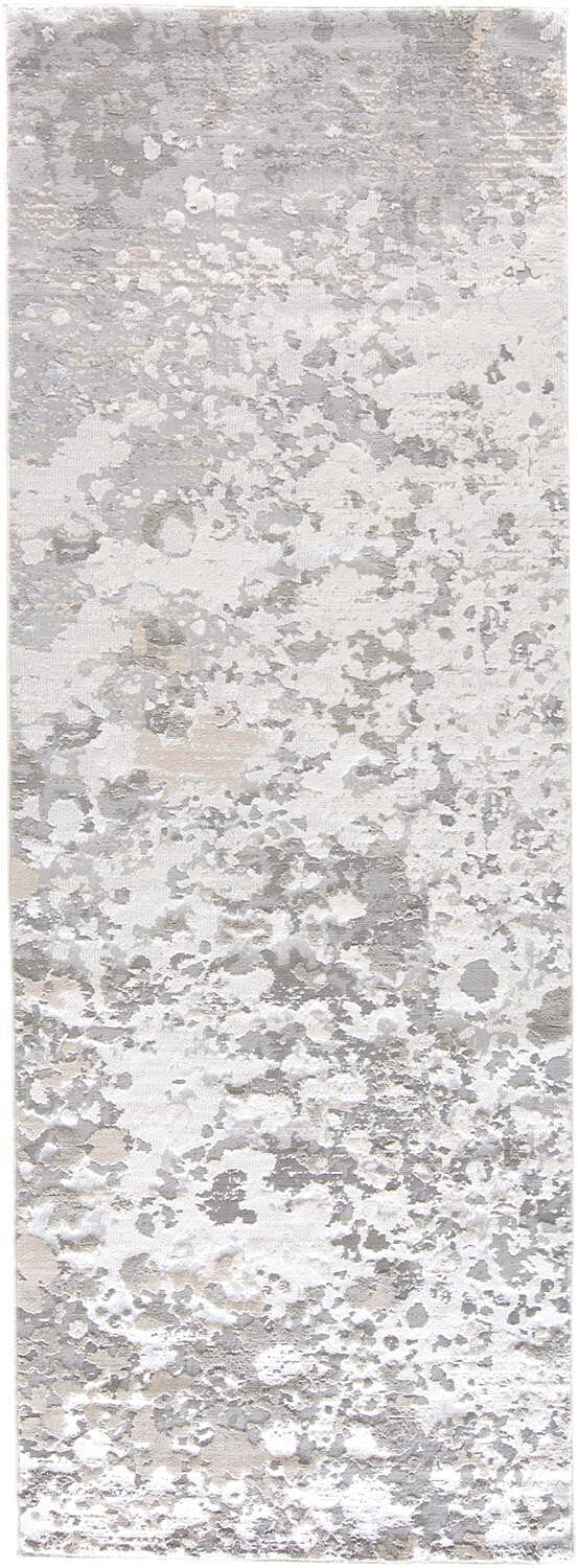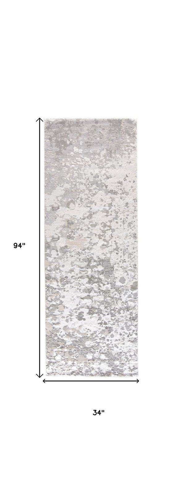 8' Gray and Silver Abstract Power Loom Runner Rug