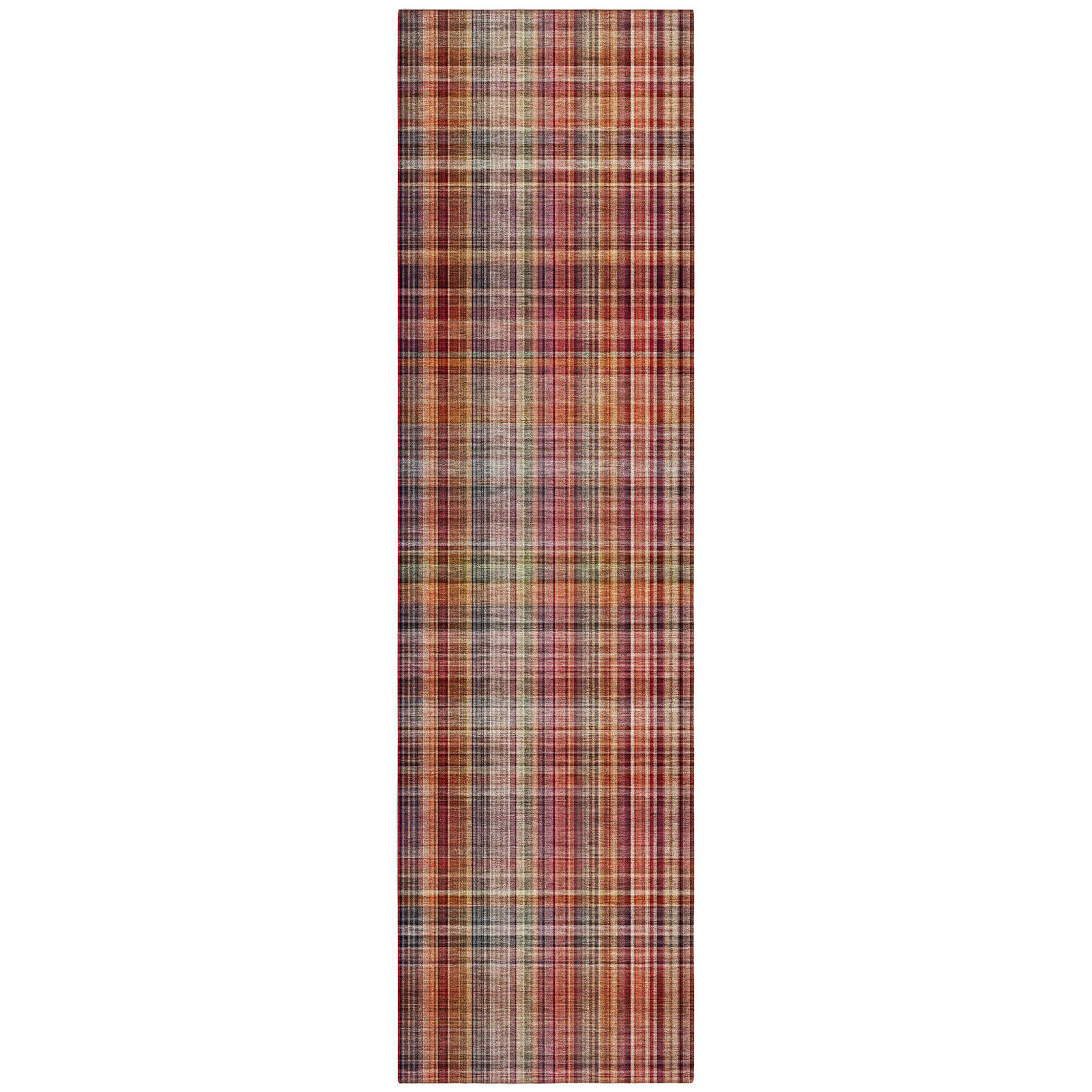 8' Runner Red Plaid Washable Non Skid Indoor Outdoor Runner Rug