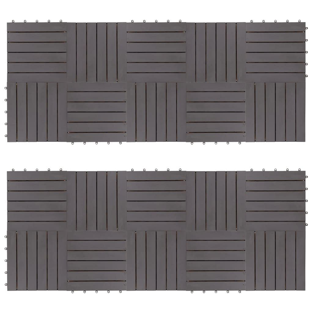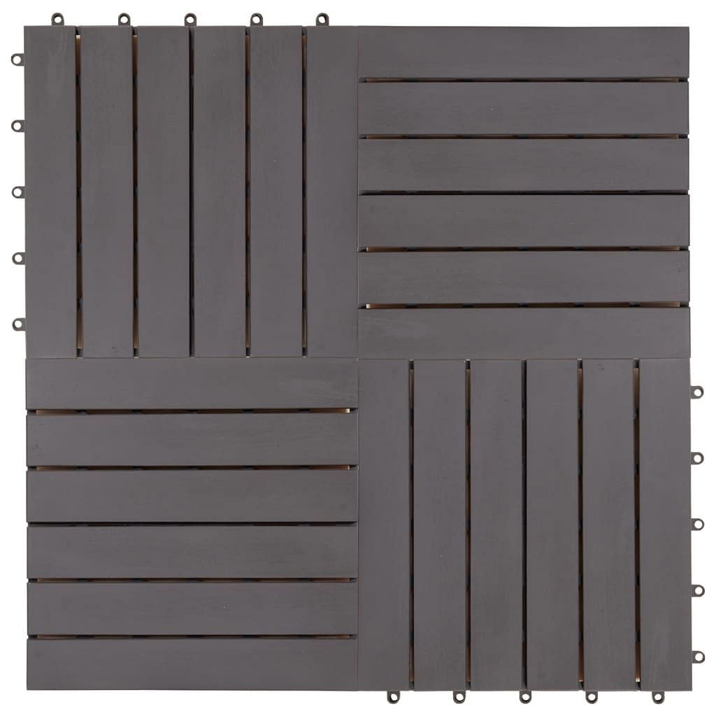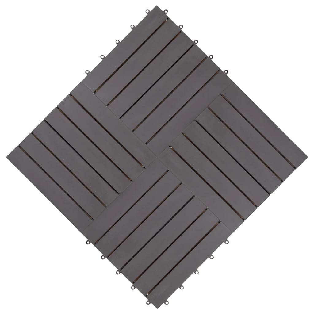 20 solid acacia wood decking tiles (11.8" x 11.8") Easy to install design - simply interlock the tiles to create a continuous surface. Versatile applications for your deck, patio, balcony, or any indoor space. A lifetime of enjoyment in a beautiful, durable, and weather-resistant product.