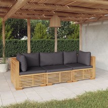 3 Piece Patio Lounge Set with Cushions Solid Wood Teak