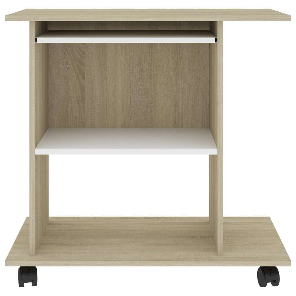 This modern design boasts a stunning white and Sonoma oak combo, making it a great focal point for your workspace. The desk maximizes space efficiency with its compact size, perfect for smaller rooms or apartments. With three pull-out shelves, it provides plenty of storage for your office bits and pieces, keeping you organized and focused. The smooth wheels let you move it around easily, so you can rearrange your workspace whenever you fancy. Built from sturdy engineered wood, this desk is durable and stable, perfect for your daily tasks and all your office gear. Color: White Shape: Rectangular Material: Engineered wood Finish: Matte Indoor/Outdoor: Indoor Only Cover Included: No Room: Office Dimensions: 19.7 x 31.5 x 29.5 in (W x L x H) Min-Max Dimensions: 0 Surface Height: 0.6 in Wheel Diameter: 2 in Weight: 49.23 lbs Delivery Contains: Computer desk components, assembly manual Assembly Required: Yes Recommended Number of People for Assembly: 2