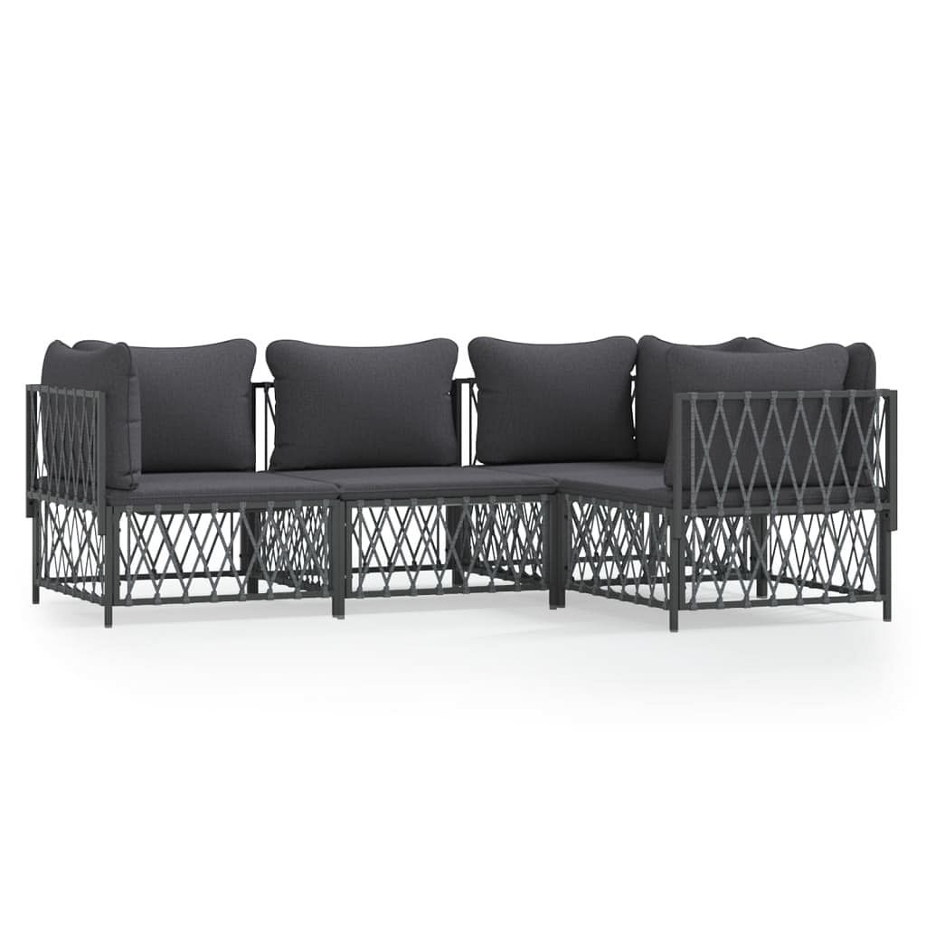 4 Piece Patio Lounge Set with Cushions Anthracite Steel