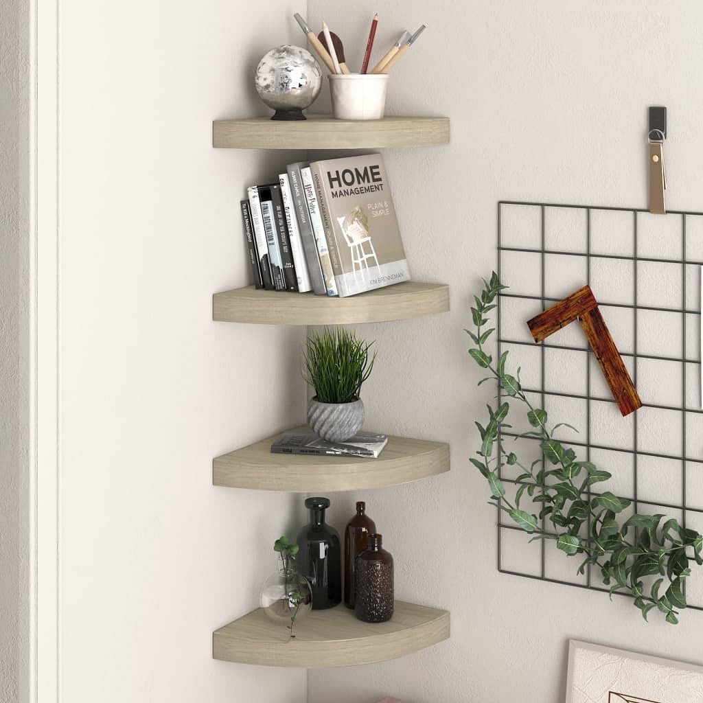 Corner Shelf Set of 4 Oak Honeycomb MDF 9.8 in Corner Shelf