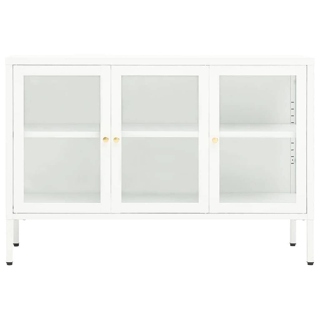 ?Versatile Design? The sideboard shows off a trendy white finish that fits really well into all sorts of decor styles, sprucing up both modern and classic interiors. Its minimalist vibe is a chic addition to your bedroom, living room, or office. ?Adjustable Features? With adjustable shelves and feet, this sideboard lets you customize your storage. Whether you've got tall books to store or want to show off prized collectibles, the adjustable shelves make it easy. ?Durable Construction? Made from powder-coated steel, this piece offers stability and durability, perfect for daily use while keeping it elegant and charming. The glass doors are tempered for safety, so you get both style and practical use. ?Easy to Clean? The smooth top of the sideboard makes keeping it looking spick and span easy. Just give it a quick wipe with a cloth, and its raised design makes cleaning underneath simple. ?Ideal for Various Settings? This cabinet works well as a buffet during parties, for office file storage, or as a display for books and decorations in any room. Color: White Shape: Rectangular Material: Metal Powder-Coated Steel Finish: Powder-Coated Indoor/Outdoor: Indoor Only Number of Doors: 3 Cover Included: No Room: Bedroom Dimensions: 13.8 x 41.3 x 27.6 in (W x L x H) Weight: 50.49 lbs Swings: No Delivery Contains: Sideboard Assembly Required: Yes Recommended Number of People for Assembly: 2