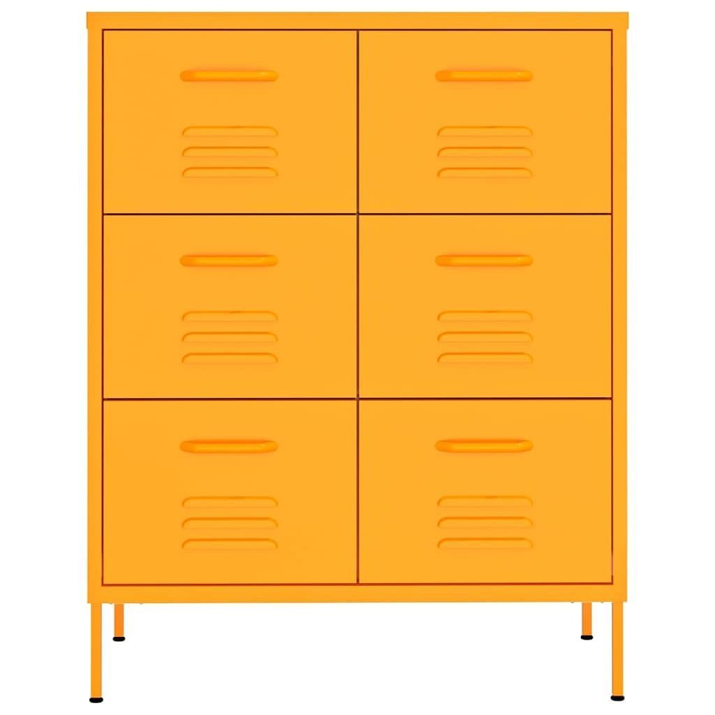 Loads of Storage: With 6 spacious drawers that each hold 44 lbs, this cabinet helps you clear out clutter and keep your space organized. Perfect for everything from toys to office supplies, knowing your essentials are sorted gives peace of mind. Sturdy Build: Made from heavy-duty steel, this cabinet is built to stand the test of time. The powder-coated finish protects against scratches, keeping it looking great through everyday use. Just wipe it down with a damp cloth to clean. Chic Design: The modern design features sleek lines, making it a great fit for contemporary homes or minimalist spaces. The matte mustard yellow lifts the room, creating a bright yet sophisticated vibe. Easy-Access Drawers: Each drawer opens smoothly with ball-bearing slides, giving you full access to everything inside. Ideal for using efficiently in tasks like sorting paperwork or showing off your collectibles. Adjustable Levelers: Special levelers work with uneven floors to keep it steady, ensuring this cabinet is safe and easy to use in any environment. Color: Yellow Shape: Rectangular Material: Metal Steel Finish: Powder-Coated Indoor/Outdoor: Indoor Only Cover Included: No Room: Living Room Capacity: 6 drawers, each holding up to 44 lbs Maximum Weit: 265 lbs Dimensions: 13.8 x 31.5 x 40.0 in (W x L x H) Leg Height: 3.9 in Weight: 55.87 lbs Ladder: No Delivery Contains: 1 x Drawer Cabinet Assembly Required: Yes Recommended Number of People for Assembly: 2