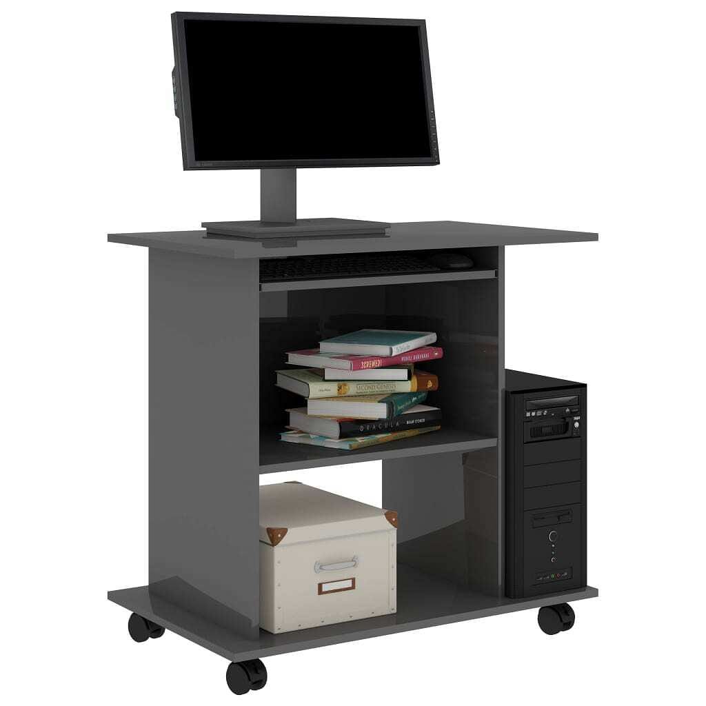 High Gloss Finish: The stylish high gloss grey finish gives this desk a stunning look, lifting the overall vibe of your office. It's a breeze to clean, keeping it looking sharp. Ample Storage Options: With three independent shelves, this desk offers organized storage for books, docs, and supplies, keeping everything within arm's reach for a productive workspace. Perfect for a clutter-free area. Adjustable Mechanism: Featuring adjustable bits like a pull-out keyboard tray, this desk adapts to different user needs and working styles. You can easily find your perfect position whether you're typing or writing. Mobile Design: Thanks to its four caster wheels, this desk moves around your office or home easily, letting you change your workspace without a fuss. Multifunctional Use: Ideal for computer workstations or as a writing desk, this piece serves multiple purposes, catering to both work and leisure in your home office. Color: Grey Shape: Rectangular Material: Engineered wood Finish: High-Gloss Indoor/Outdoor: Indoor Only Cover Included: No Room: Office Capacity: N/A Maximum Number of People: 1 Dimensions: 19.7 x 31.5 x 29.5 in (W x L x H) Surface Height: 0.6 in Wheel Diameter: 2 in Weight: 49.23 lbs Delivery Contains: Computer desk Assembly Required: Yes Recommended Number of People for Assembly: 2