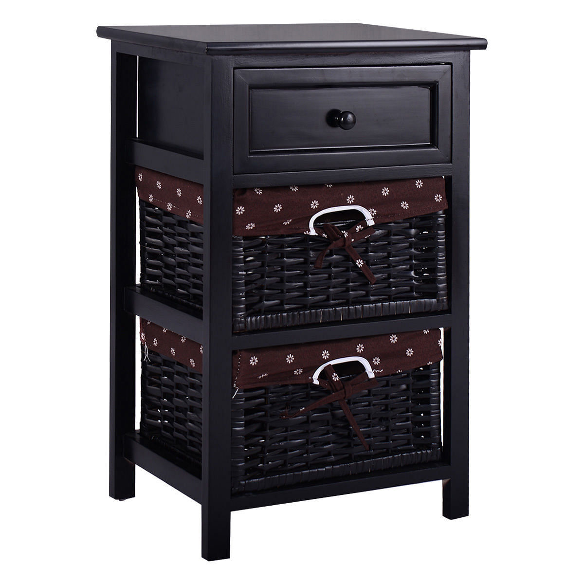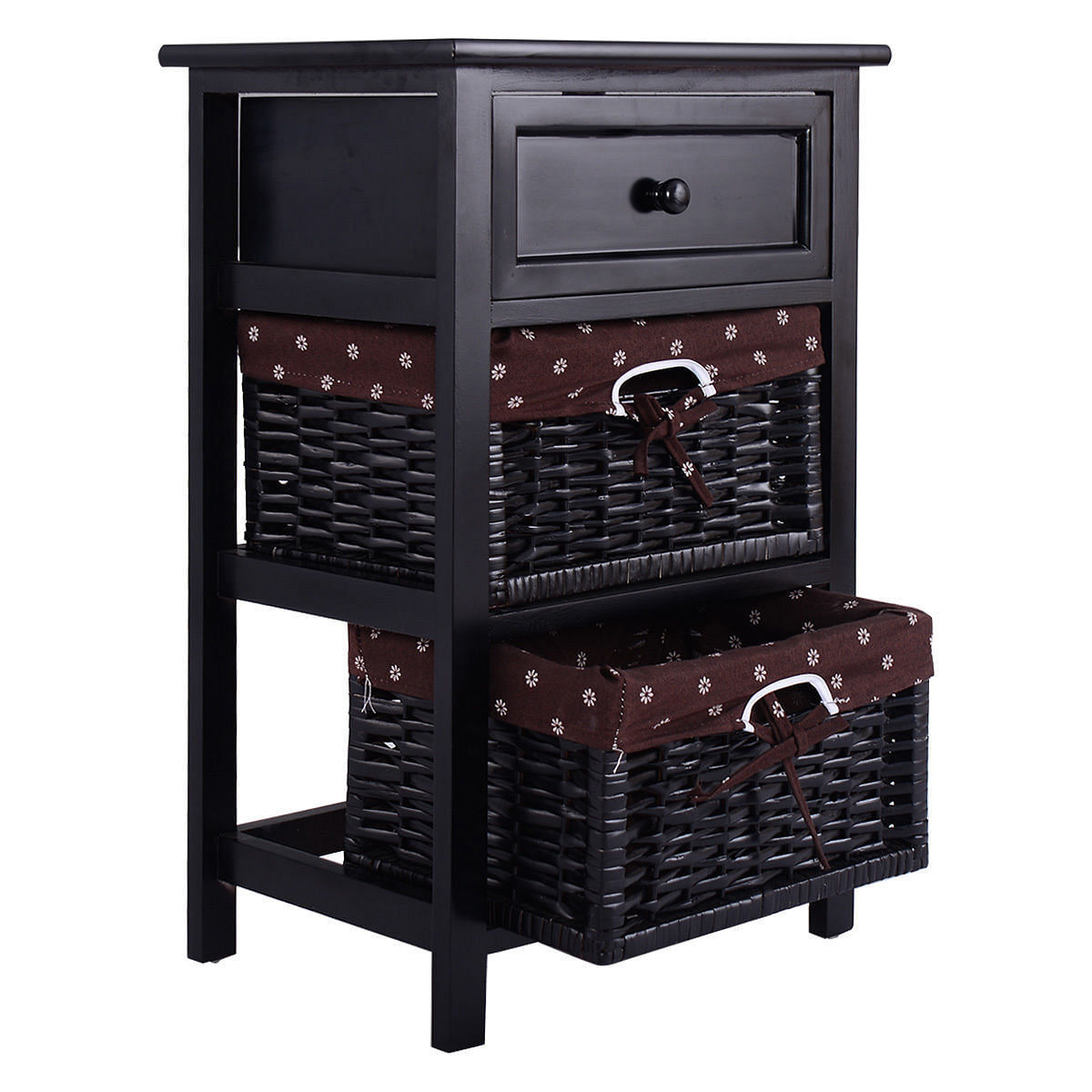 3 Tiers Wooden Storage Nightstand with 2 Baskets and 1 Drawer-black - Color: Bla