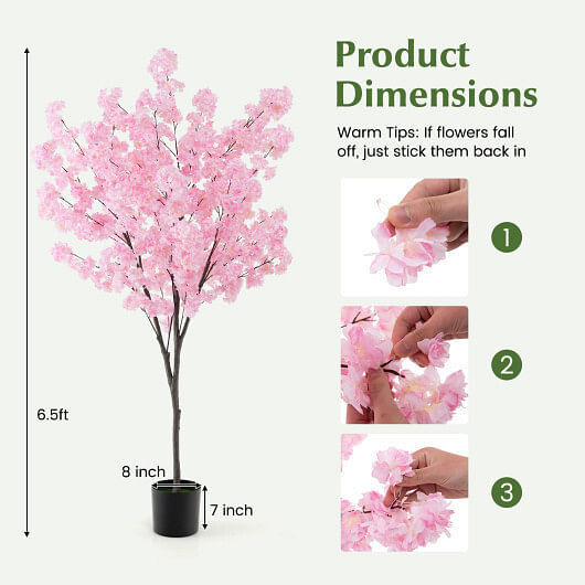 6.5 FT Tall Artificial Cherry Blossom Tree with 900 Pink Flowers - Color: Pink