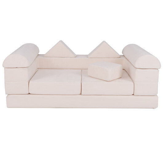 9-Piece Climb and Crawl Foam and Floor Playset with Breathable Suede Fabric-Beig