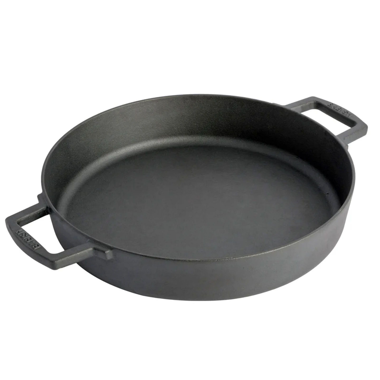 Cook, serve and impress with amazing dishes all day, every day. The Babish 13-inch Pre-seasoned Cast Iron Everyday Pan is a durable kitchen workhorse that gets the job done. This piece can help whip up any dish with maximum heat efficiency, from food hacks to gourmet dishes. Robust cast iron handles provide support when cooking and serving from oven to table. Safe on the grill and on gas, electric, ceramic, glass and induction stoves. Oven safe up to 500F. Handwash recommended.