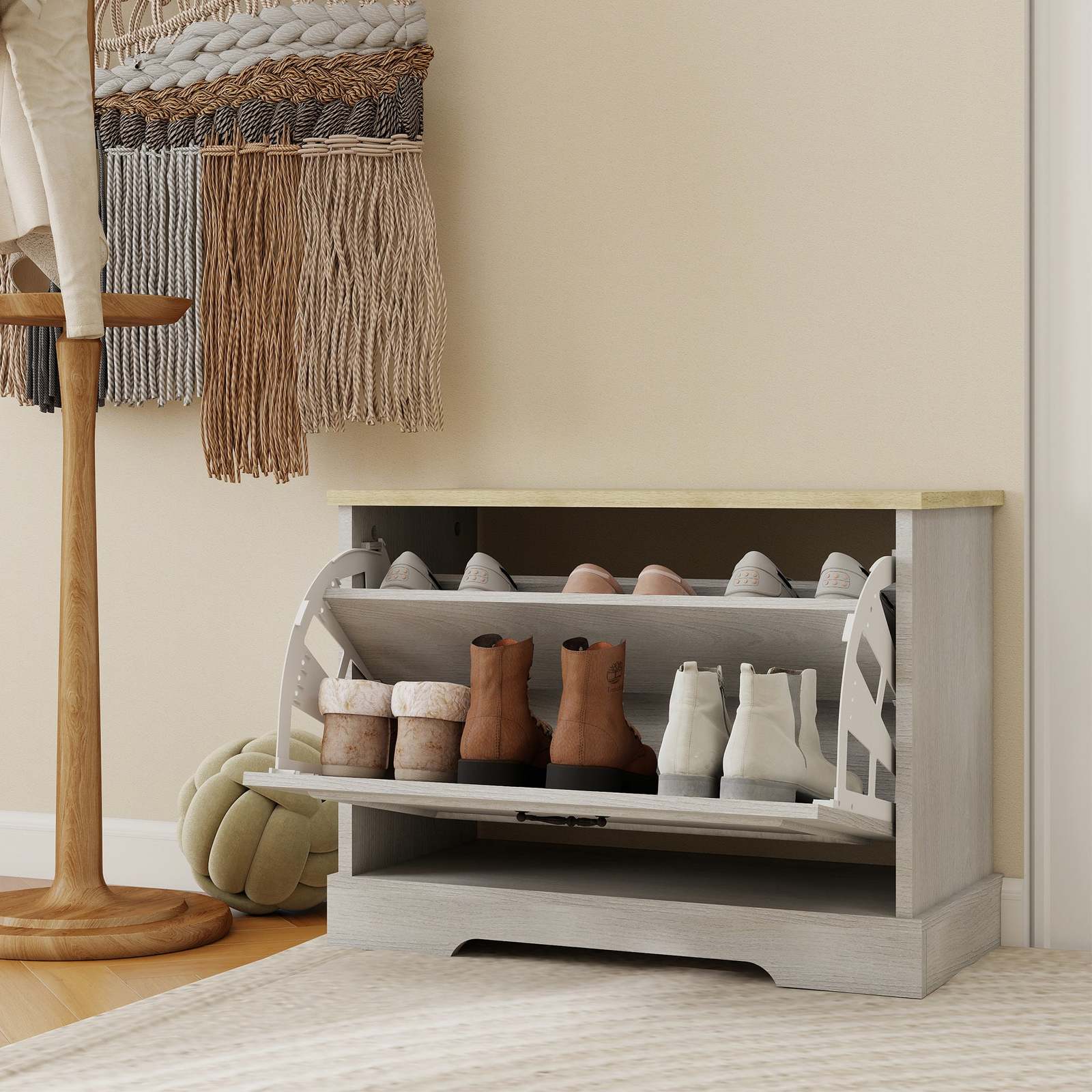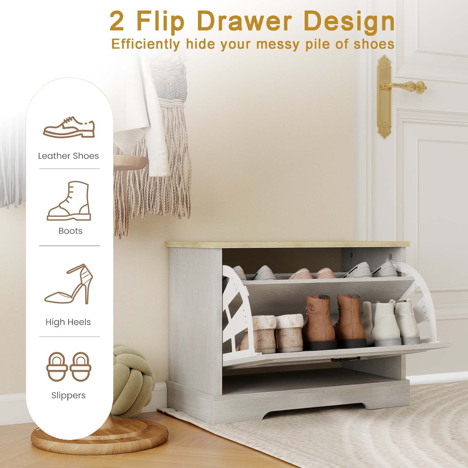 Entryway Shoe Storage Bench with Flip Drawer - Antique White