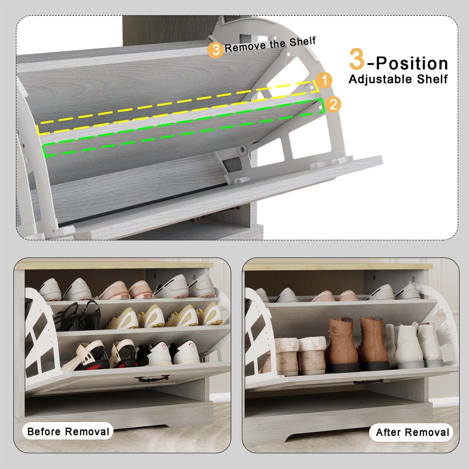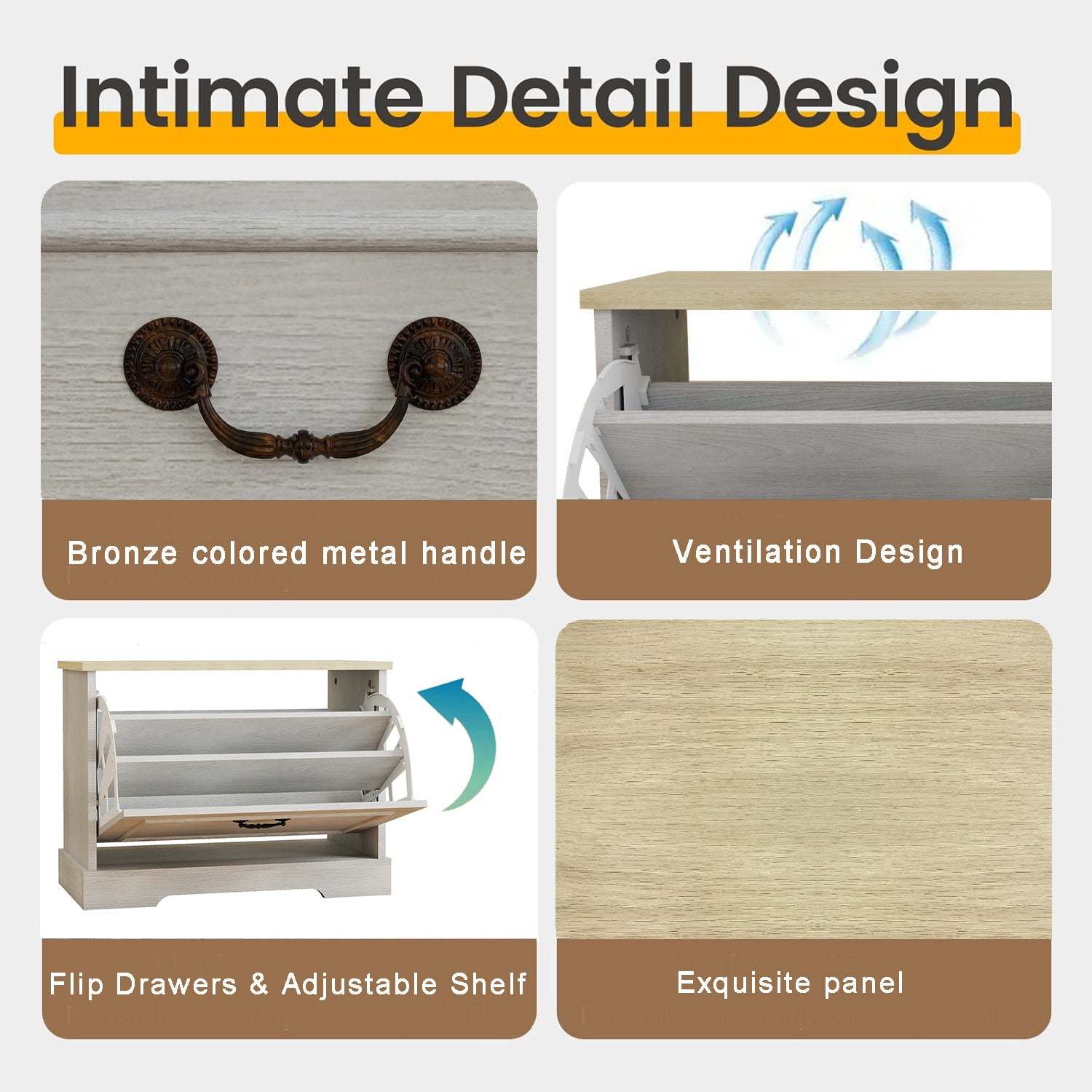 Space Saving:The modern freestanding shoe bench features space-saving flip drawers that are convenient to open and close. Unlike regular shoe racks, this shoe cabinet fits perfectly in tight spaces, keeping your shoes clean. There are no boards on the back to keep ventilation and keep the shoes odor free.