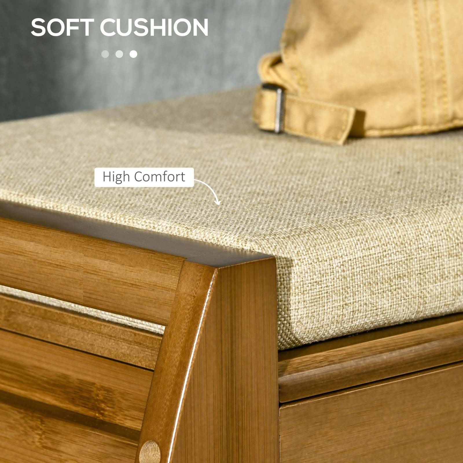 Bamboo Shoe Bench with Storage & Cushion for Entryway