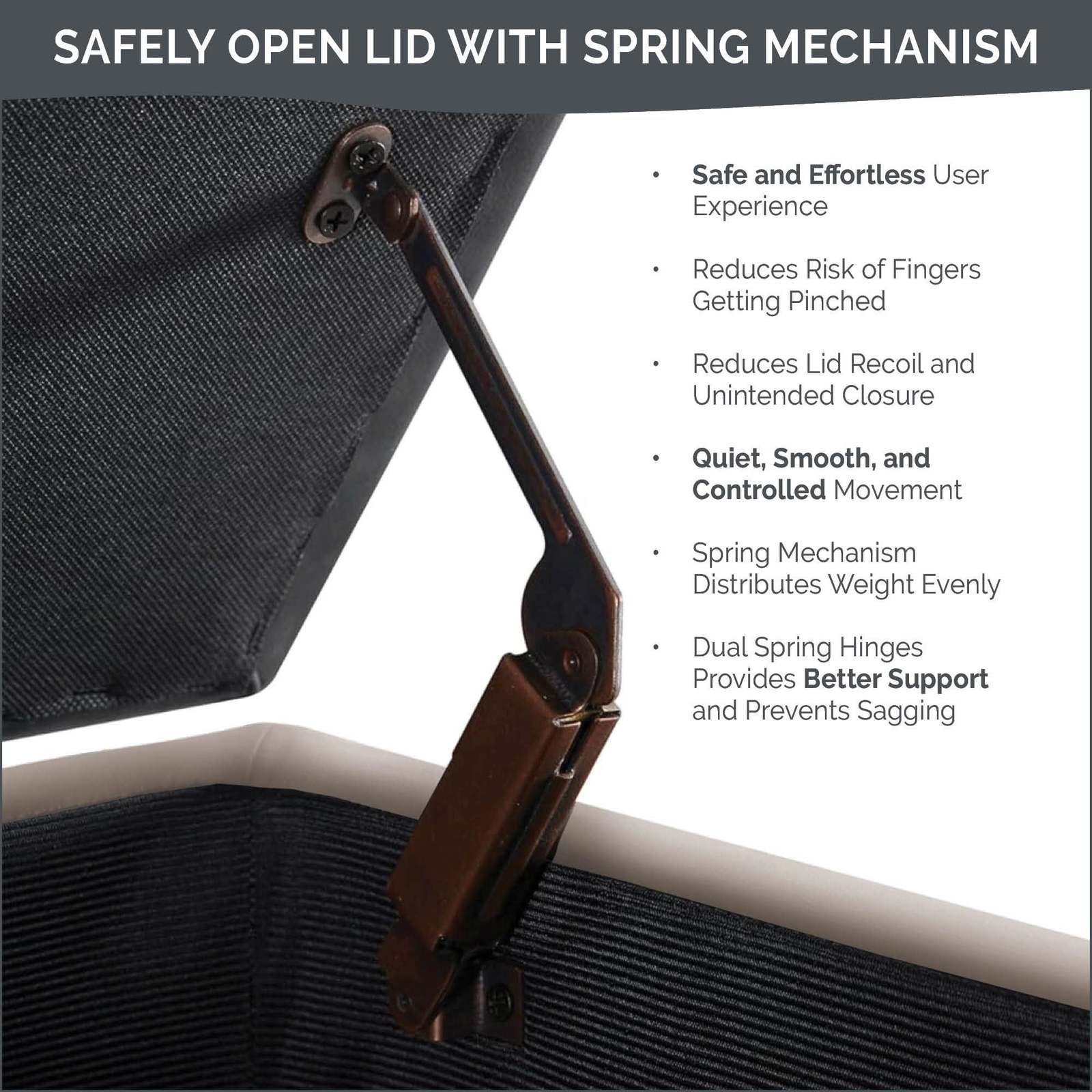 Quality construction with padded lid and sides, solid wood legs and quiet and smooth soft-close seat using gas-lift mechanism