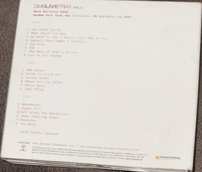 DAVE MATTHEWS BAND Live Trax Vol 2 : Golden Gate Park Sept 12, 2004 : 3-Disc CD