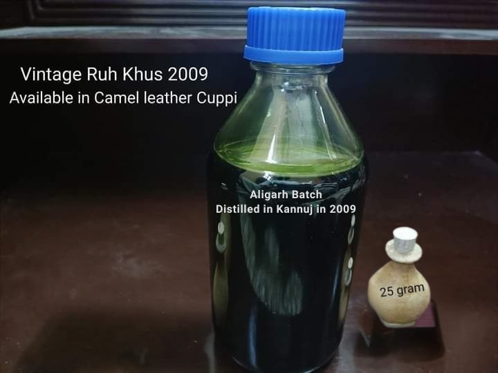Vintage Ruh Khus (Wild Vetiver Oil) from Aligarh, distilled in Kannuj in 2009 by desi degh Bapka method