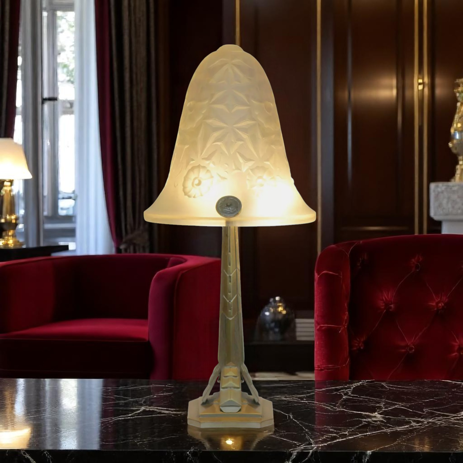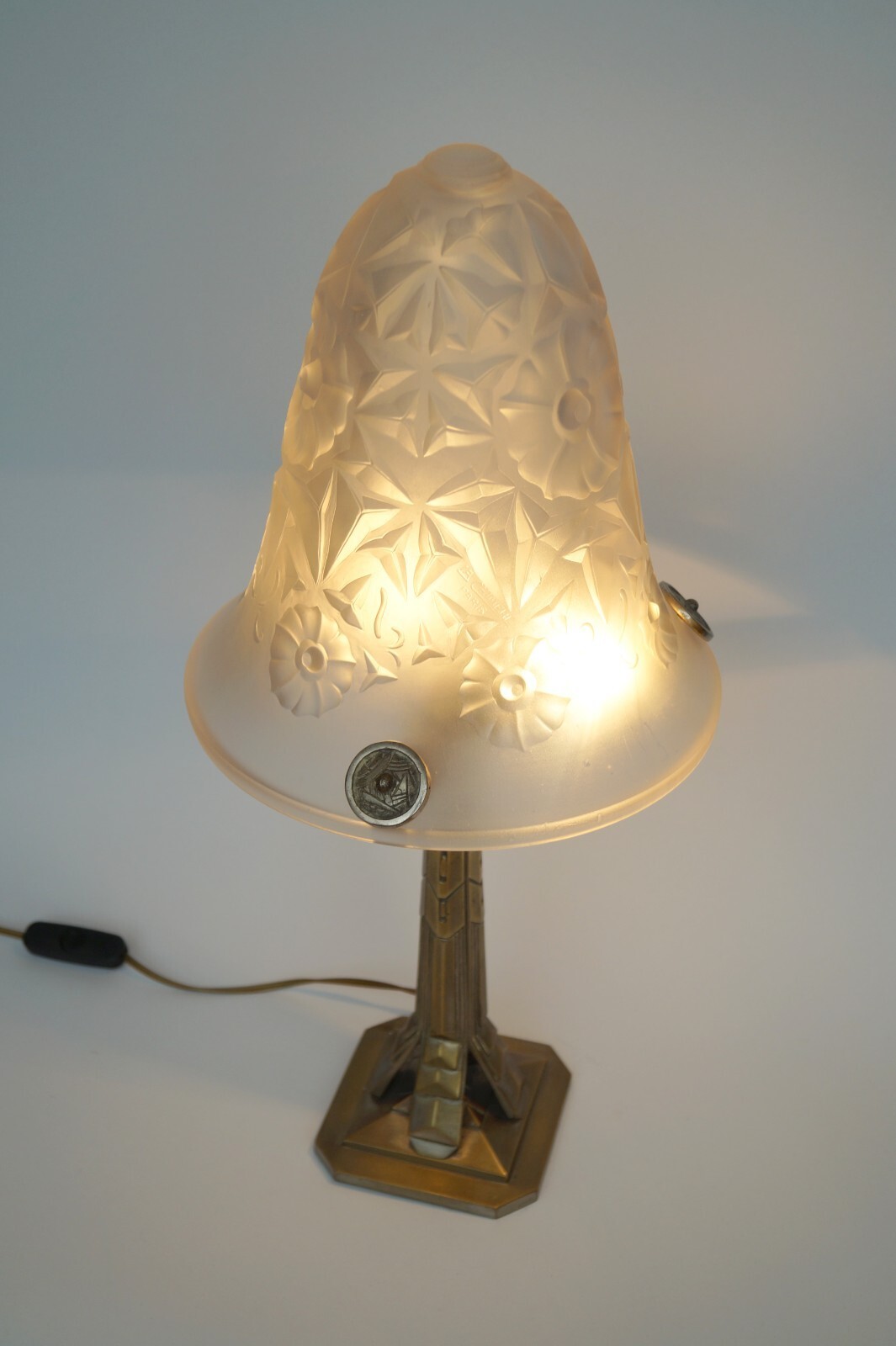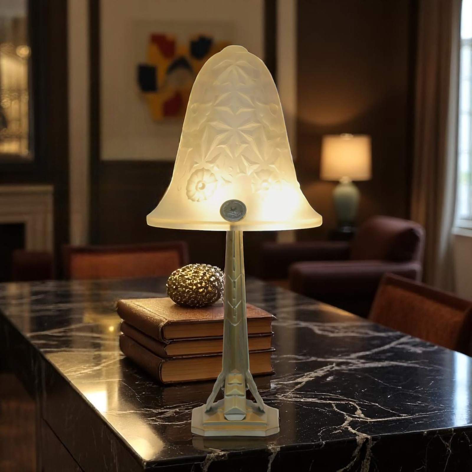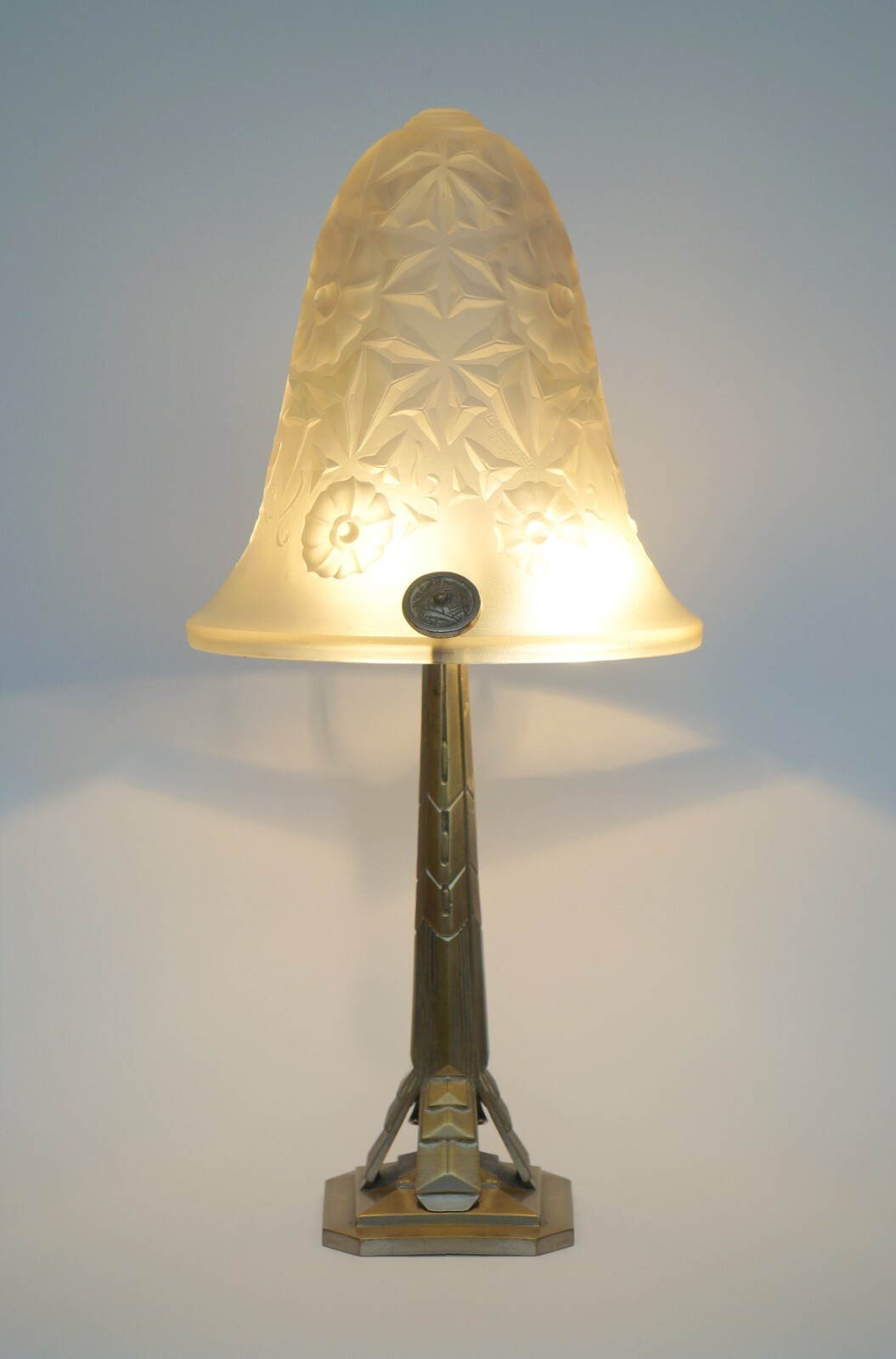 Very rare, museum original Art Deco table lamp from La Chimere Paris (signed in the glass!).