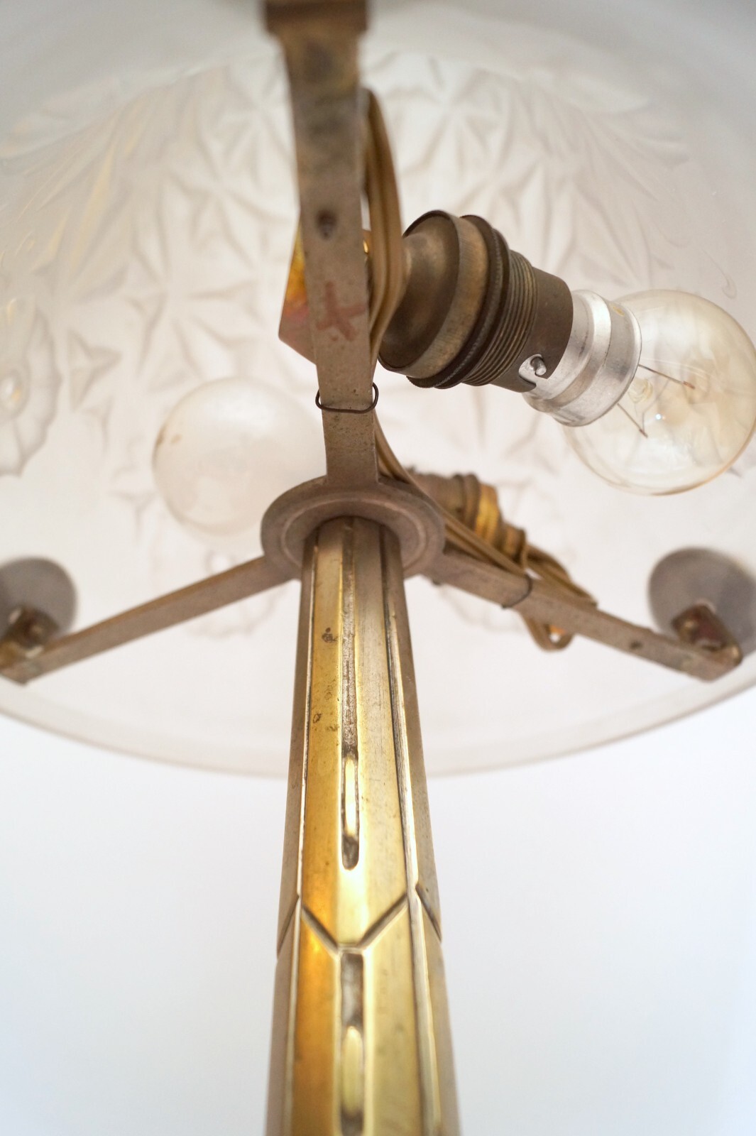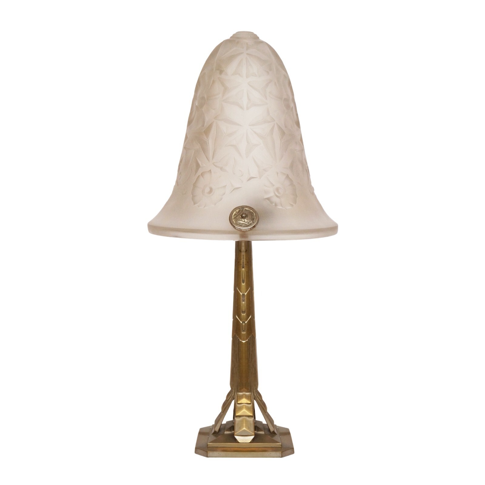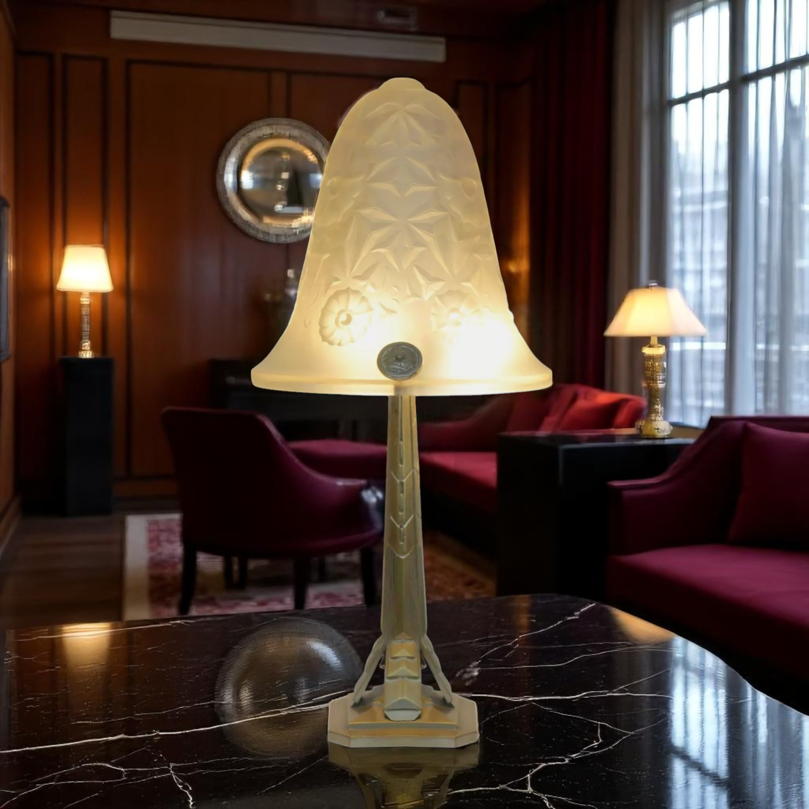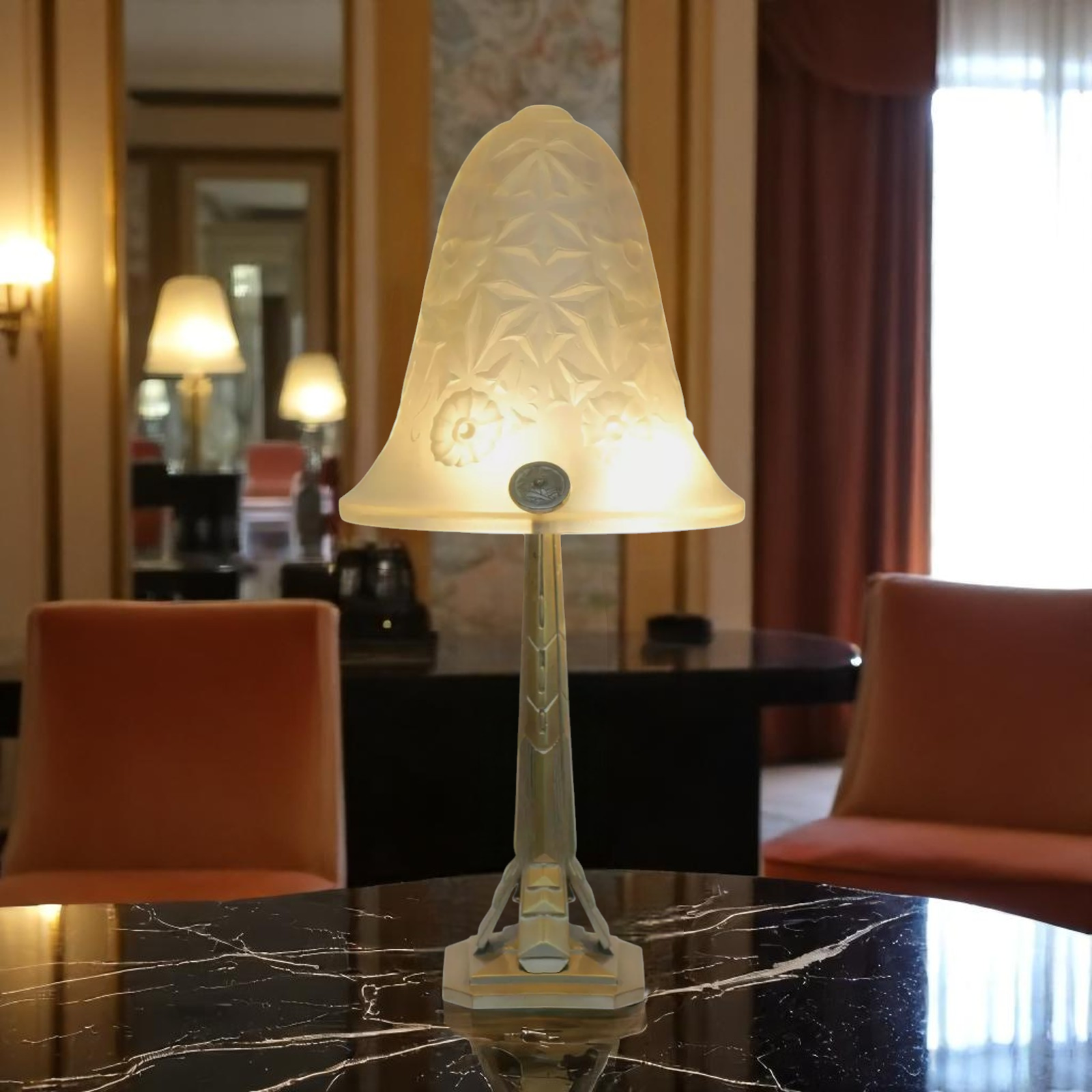 Very rare, museum original Art Deco table lamp from La Chimere Paris (signed in the glass!).