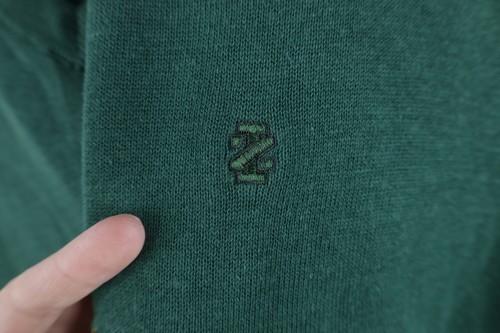 New with defects. Blemish front bottom. Light spots front, back. Shoulders discolored. Loose thread collar