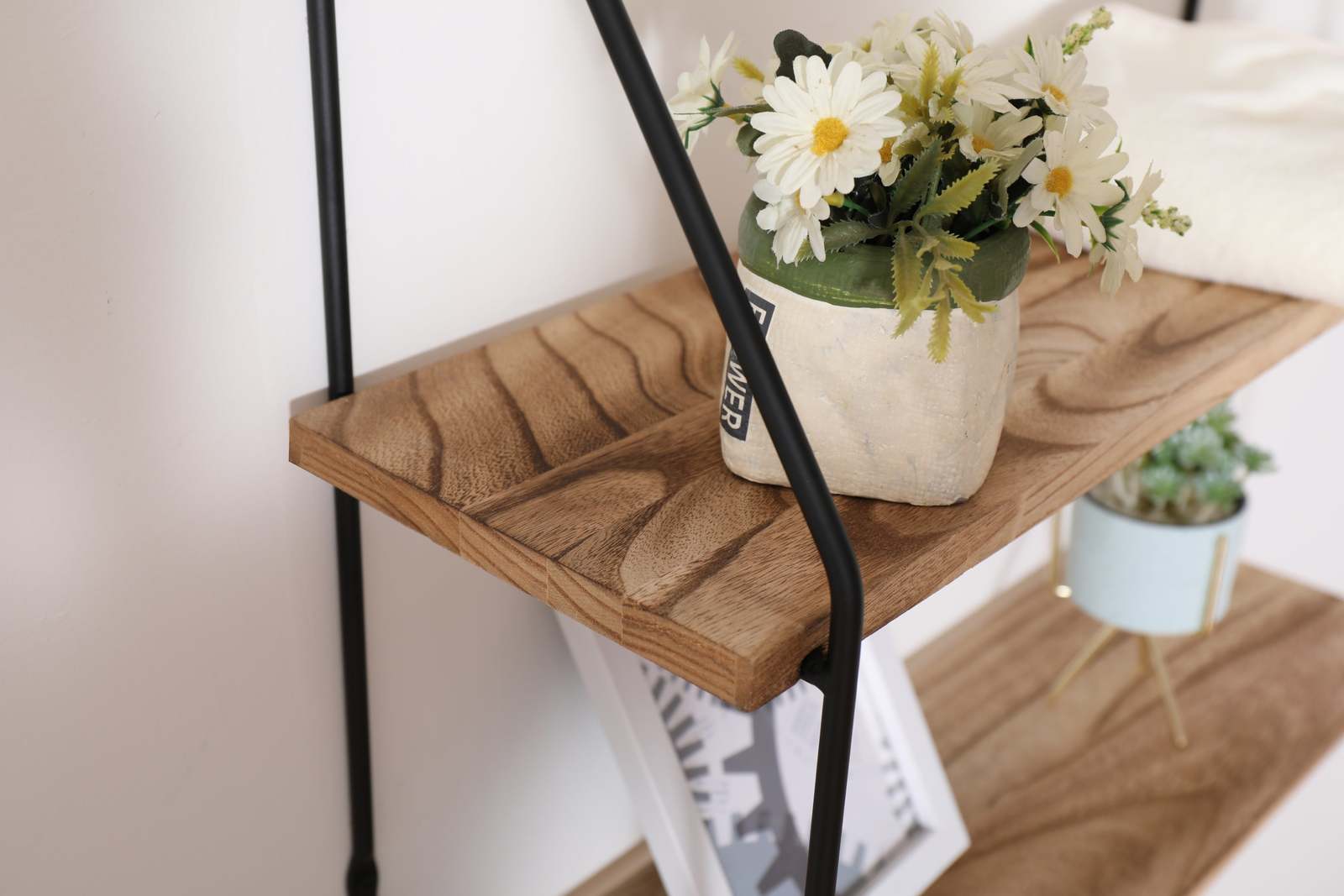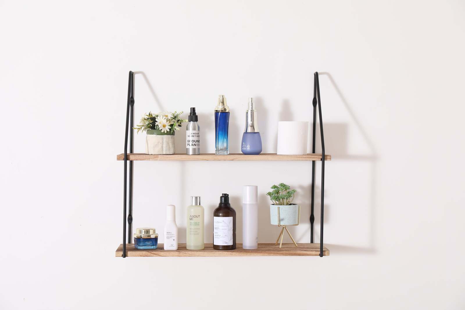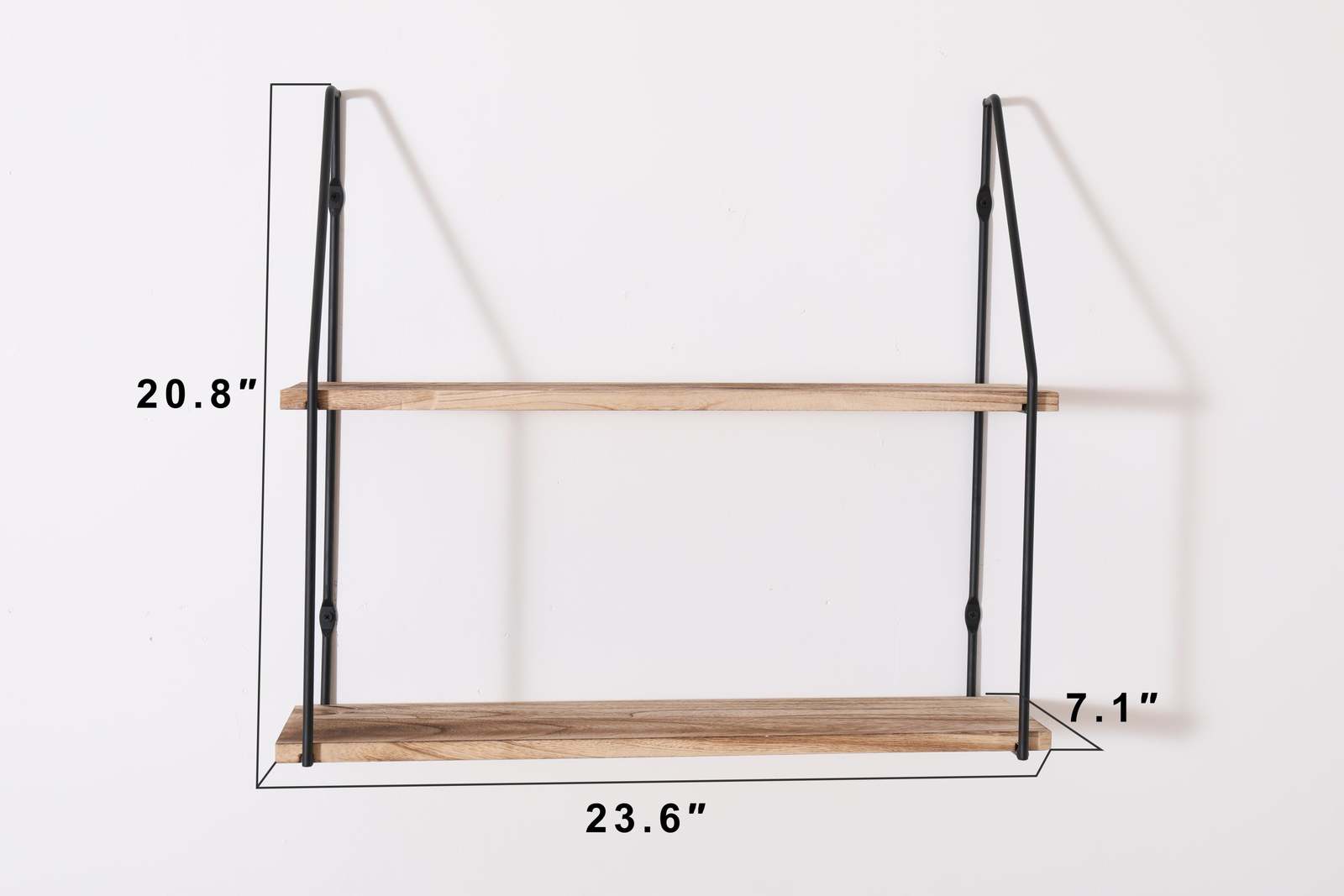Rustic Wood Floating Wall Shelf with Metal Brackets - 2-Tier Storage