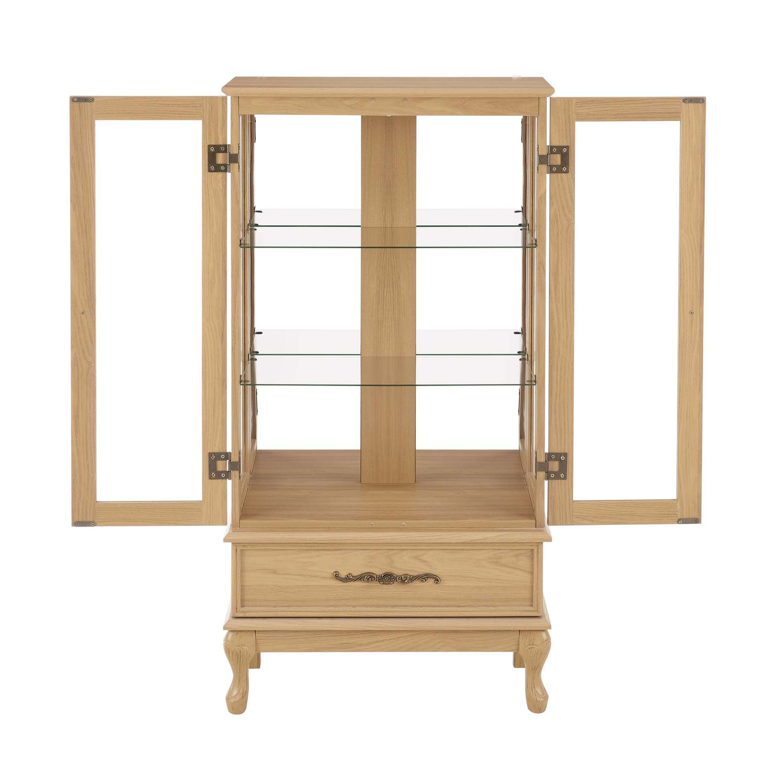 [Multiple Storage Spaces]This beautiful cabinet with 2 glass doors, a total of 3 partitions and a large drawer provides ample and versatile storage space.