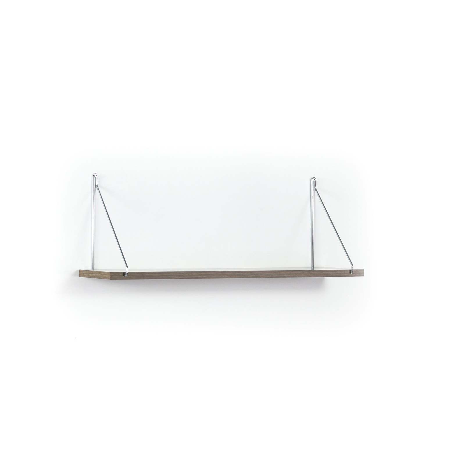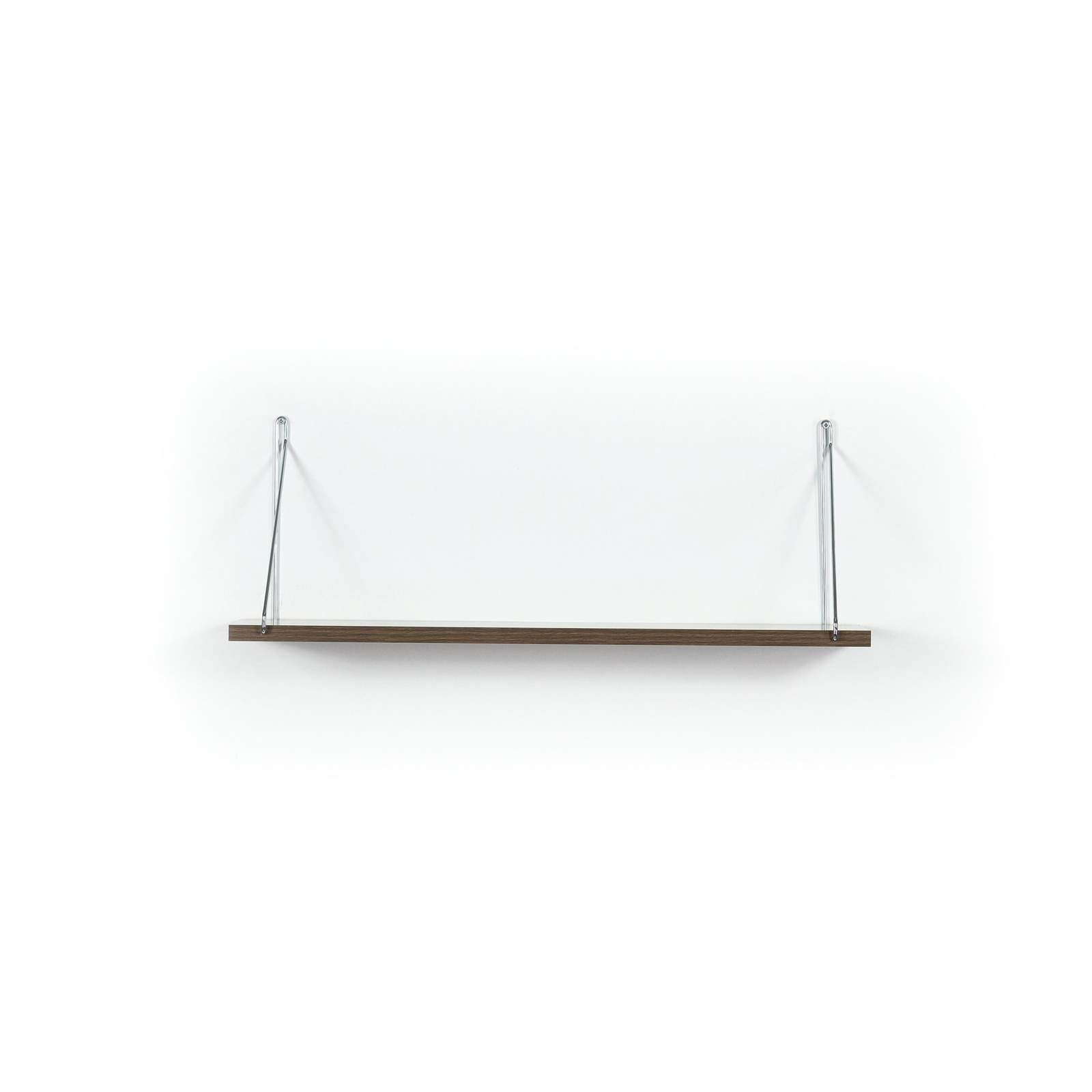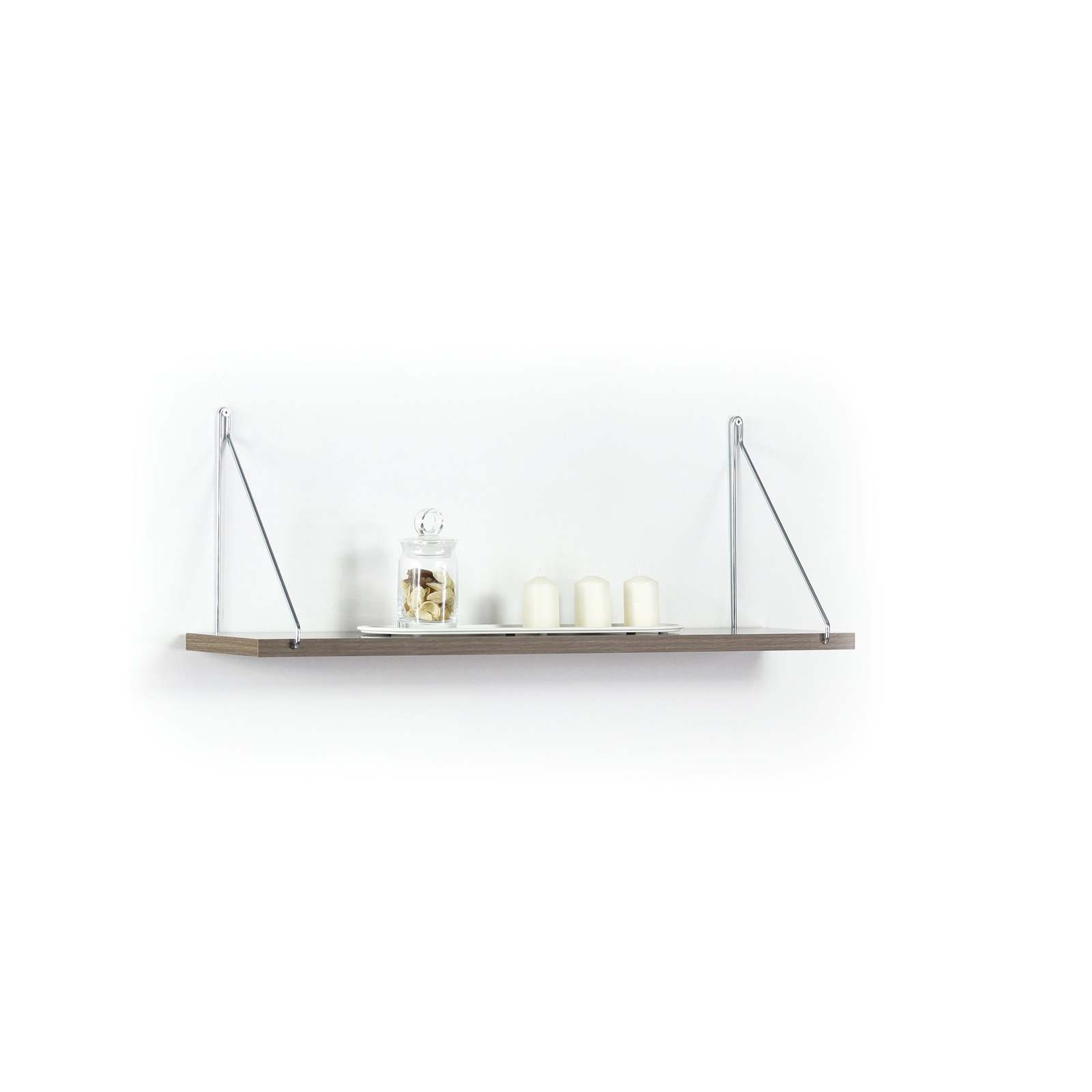 Elevate your interior with this sleek and minimalist wall shelf, designed to bring functionality and modern style to any space. Featuring a single wooden shelf paired with polished chrome-finished metal supports, this piece offers a clean and contemporary look that blends effortlessly with a variety of decor styles.