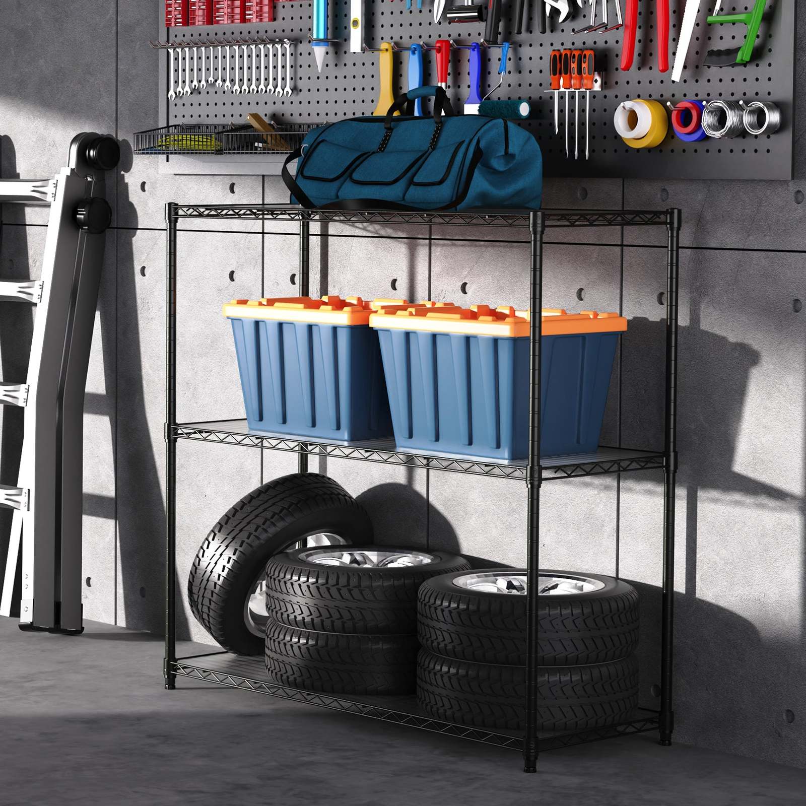 Heavy Duty 3-Tier Black Metal Wire Garage Shelves NSF Adjustable