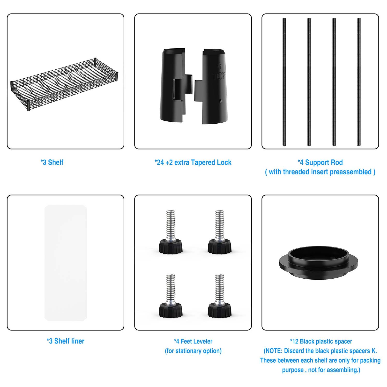 [3 TIER LARGE CAPACITY] - Heavy duty shelving with leveling feet - each layer shelf can hold 350lbs (evenly distributed), maximum load capacity is 1050 lbs. It is recommend that heavy items on the bottom shelf for maximum stability. 3 shelf Liners choice of beautiful and fun transparent colors allow you to add a pop of color to your life. Shelf Liners is waterproof - Won't get damaged from exposure to moisture.[ADJUSTABLE DESIG] - Each shelf can adjustable in 1-inch increments, adjust the shelf height according to size of the item, meet your different needs, get the best utility shelf.[EXTREMELY DURABLE] - Wire shelving made of heavy steel, it has excellent rust resistance and oxidation resistance. Our wire shelf liner is crafted to provide unparalleled quality, longevity, function and beauty. Better quality thicker than the competition. The 3 tier shelf unit passed NSF certified, safe and reliable. Storage rack are perfect addition to home, office.[EASY MOVEMENT] - 3 tier garage shelves have 4 leveling feet. Wire rack on leveling feet can be easily positioned in supermarkets, garages, closets, kitchens, porch, pantry, etc. Height-adjustable leveling feet can be placed on uneven ground- simply twist to stabilize. Non-slip, will not scratch ground.