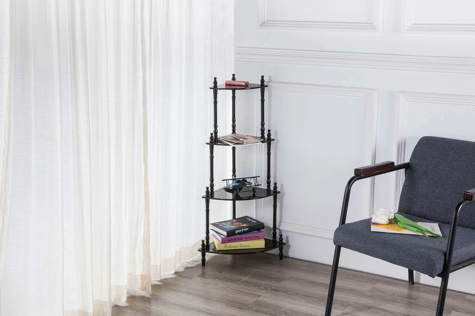 Use the 4-shelves to store decorative items, books, parlor games and more
