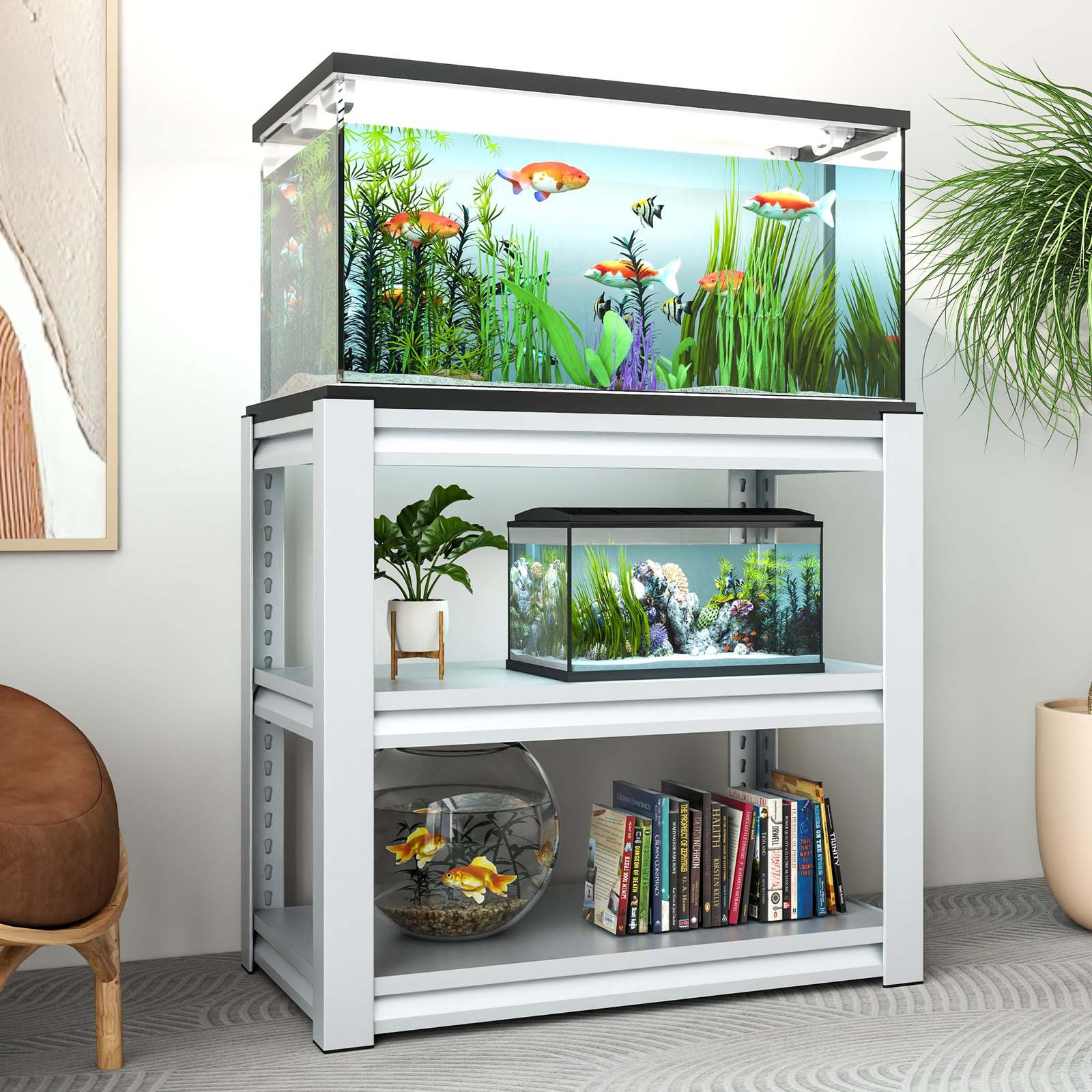 High Space Utilization: The 3-tier fish tank stand allows for adjustable shelf heights, which can be freely adjusted up and down 3 inches according to the height of the fish tank or aquarium. Additionally, you can use it to store fish accessories like fish food, nets, or place books, potted plants, and other