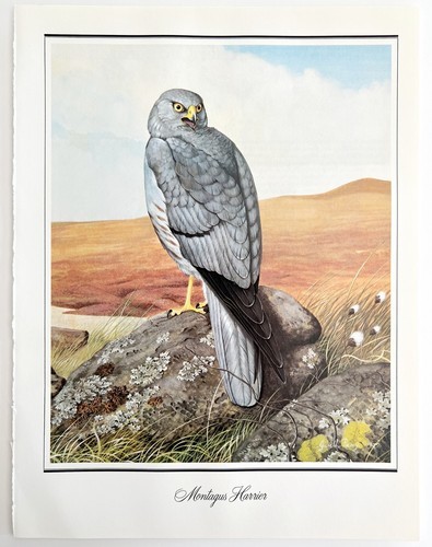 Montagus Harrier Art Print Color Plate Birds Of Prey Vintage Nature 1979 DWT11C