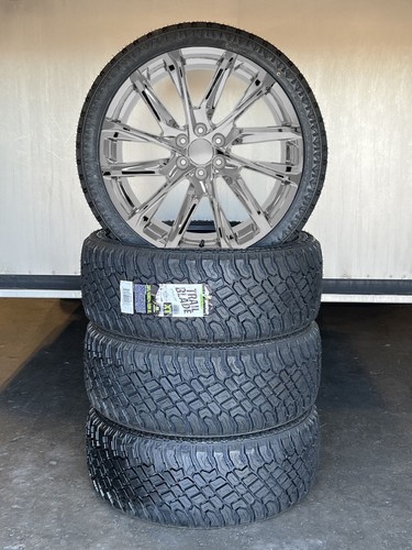 New Set Of Four GM Style Replica 24" Chrome SSX Style Wheels With New 285/40R24 112H XL Atturo Trail Blade XT Tires with TPMS installed.