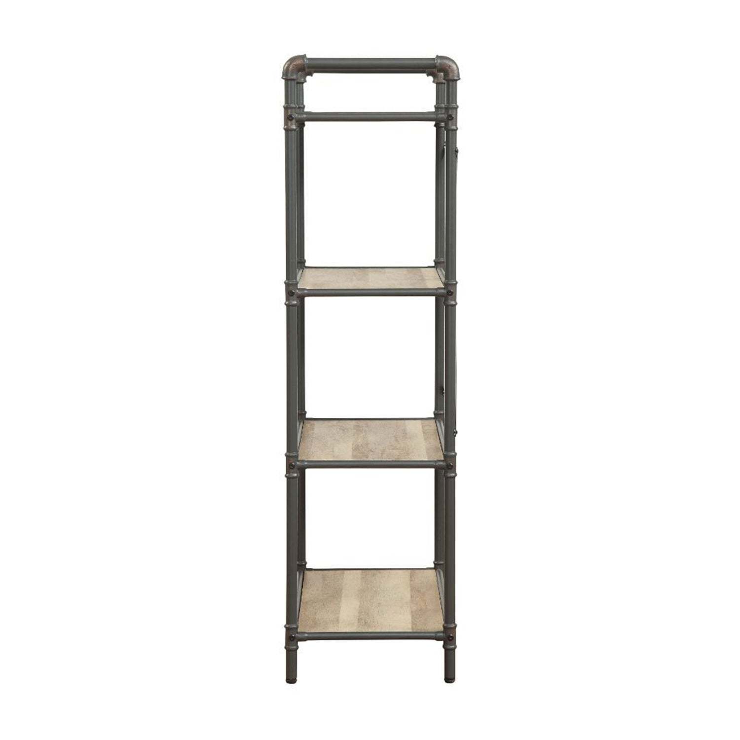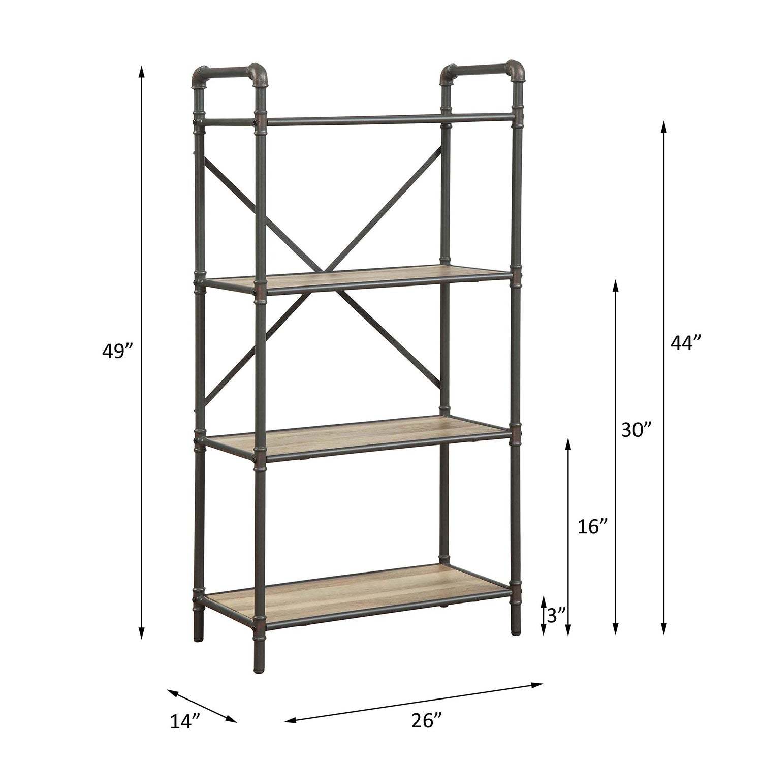 4-Tier Bookshelf Metal Steel Tube, Antique Oak & Sandy Gray