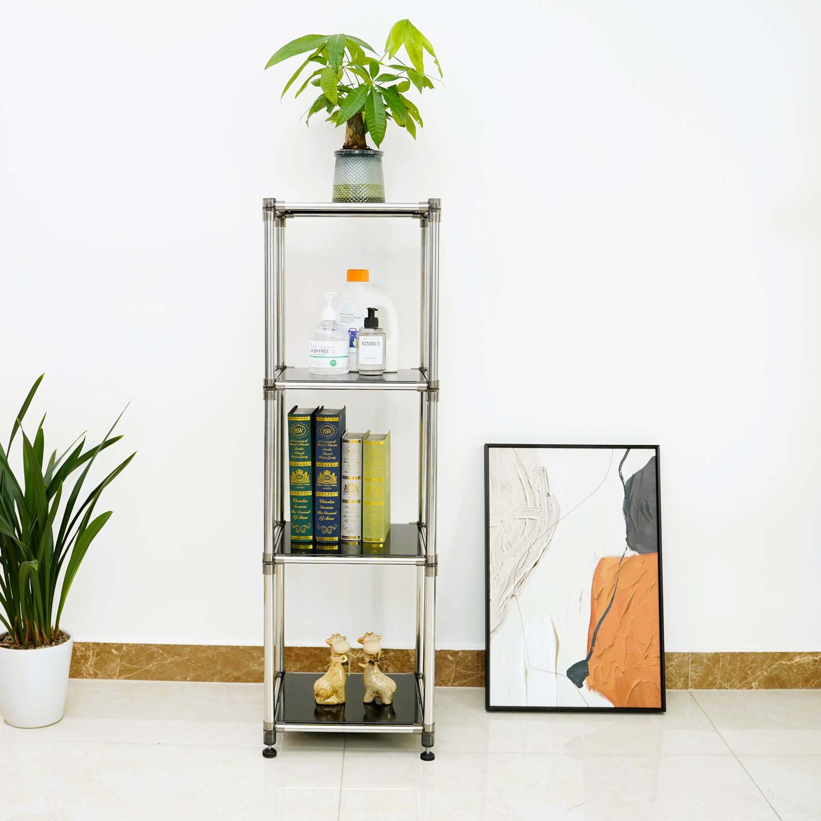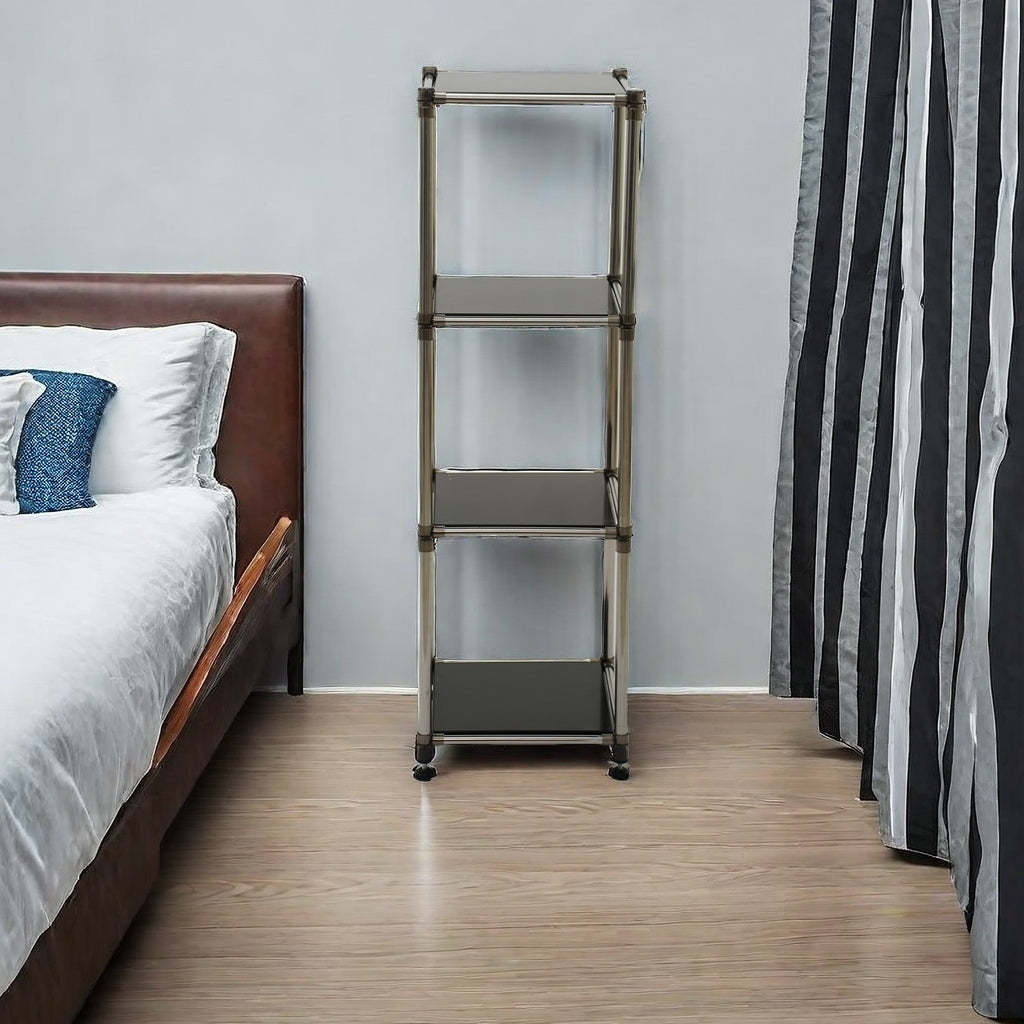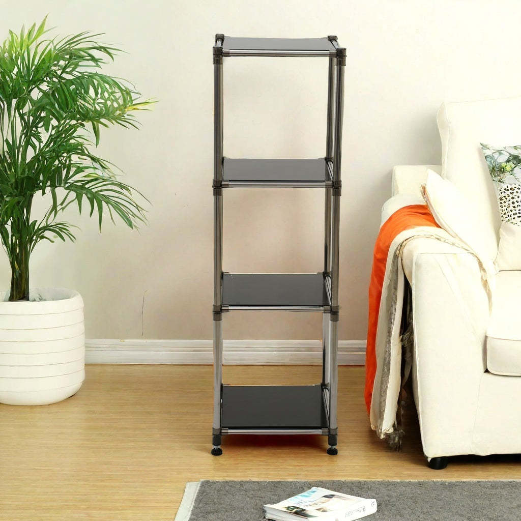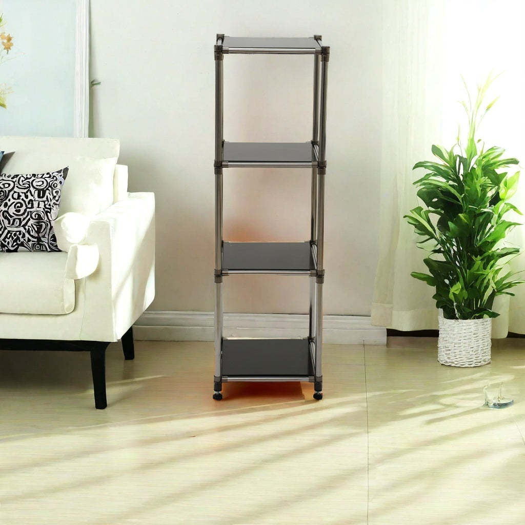 Korean Black 4-Tier Heavy Duty Stainless Steel Storage Shelving Unit
