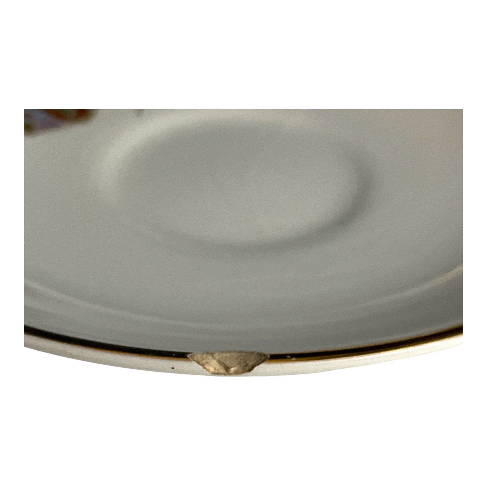 * Condition: One saucer rim chip (pictured), minor gold wear, and glaze crazing from age