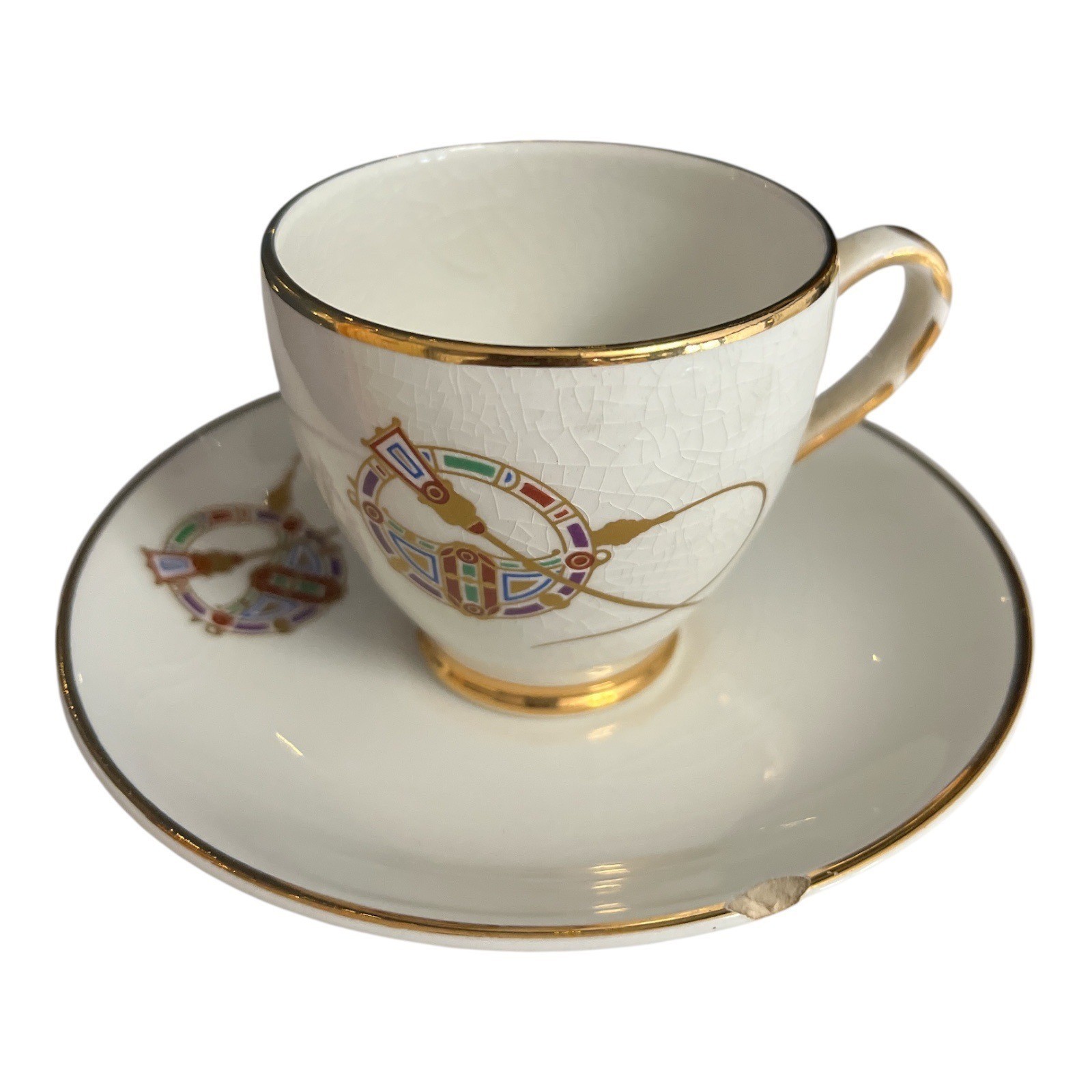 1960s Arklow Ireland Ironstone Demitasse Cups & Saucers – Clock Face Gold Trim –
