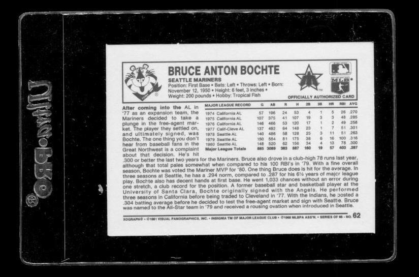 1981 Kellogg's Cereal Premium 3-D Baseball Super Stars Bruce Anton Bochte #62