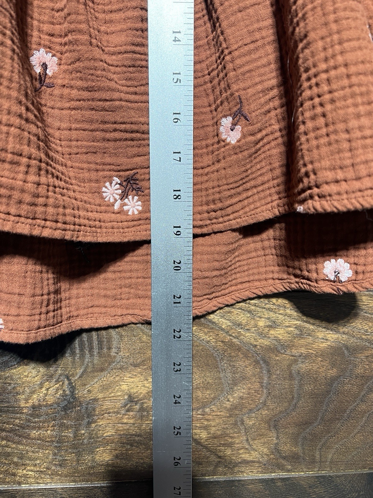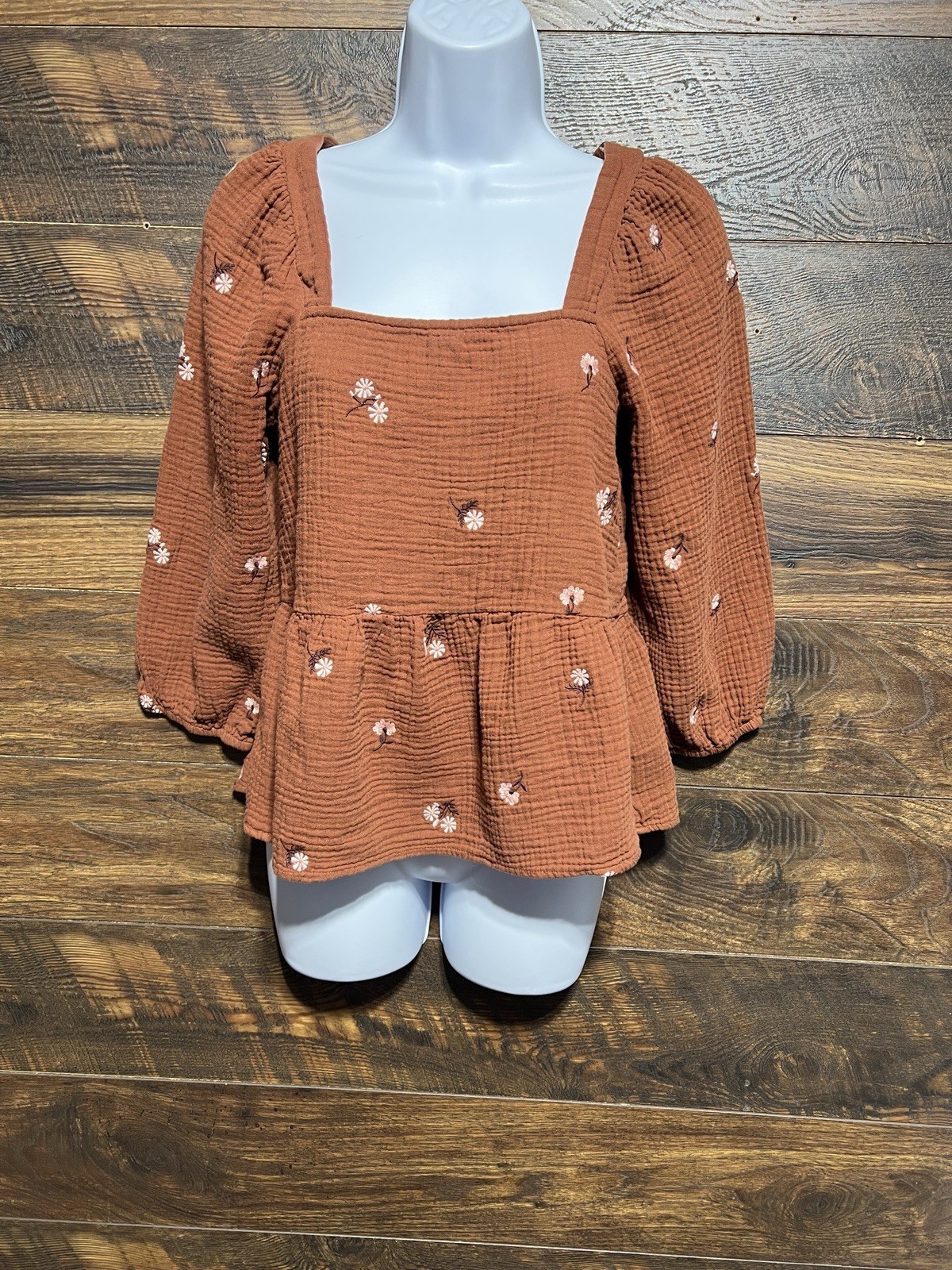 Madewell Amie Shirt Womens Size XS Brown Floral Embroidered Puff-Sleeve Casual