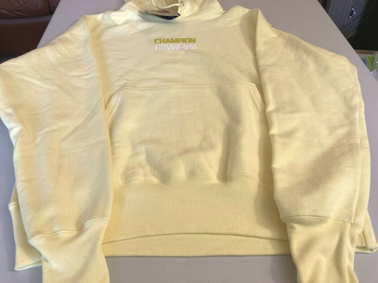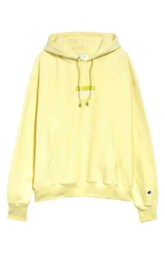 Champion Men's Relax-Fit Reverse Weave Logo Hoodie Lemon Glacier-Large